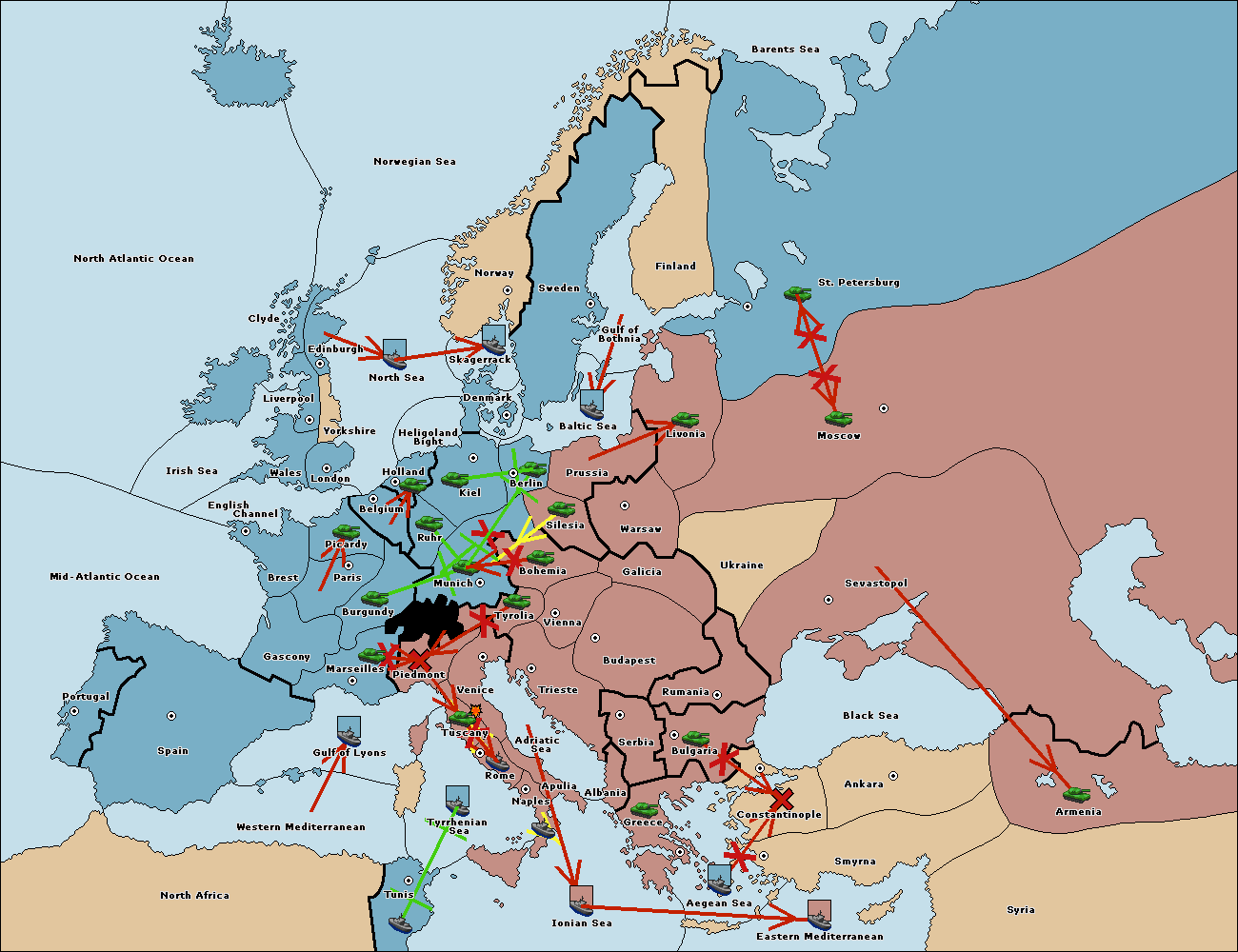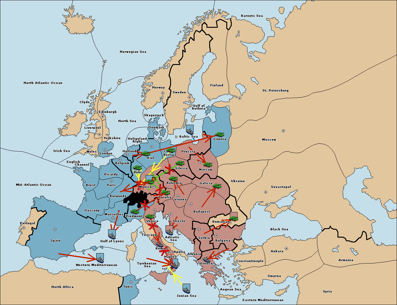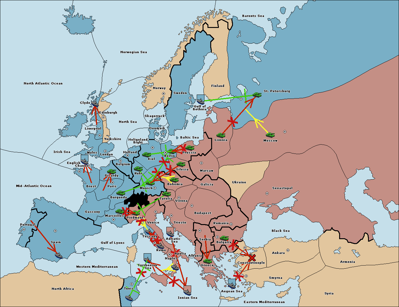 The fleet at Aegean Sea support move to Ionian Sea from Tunis.