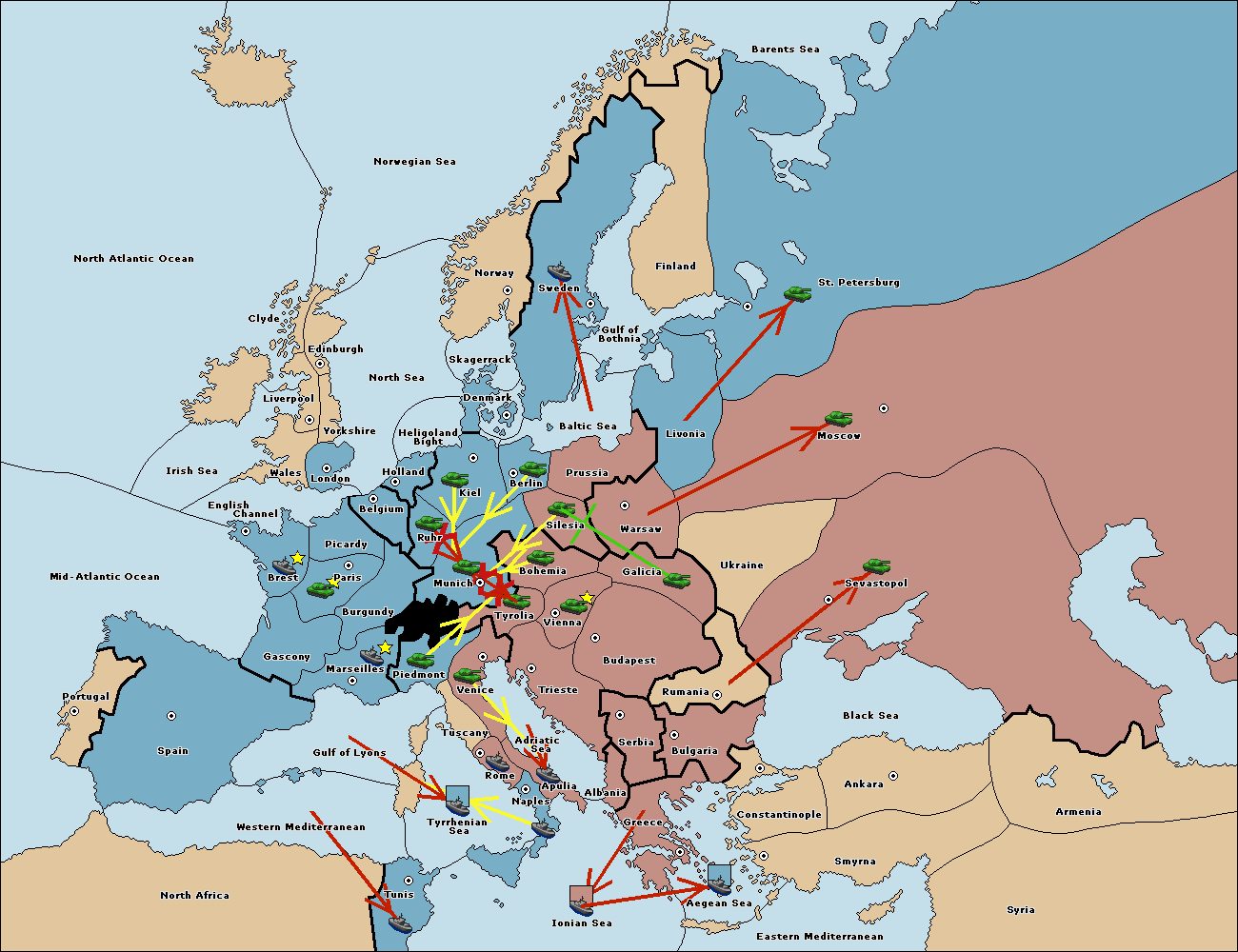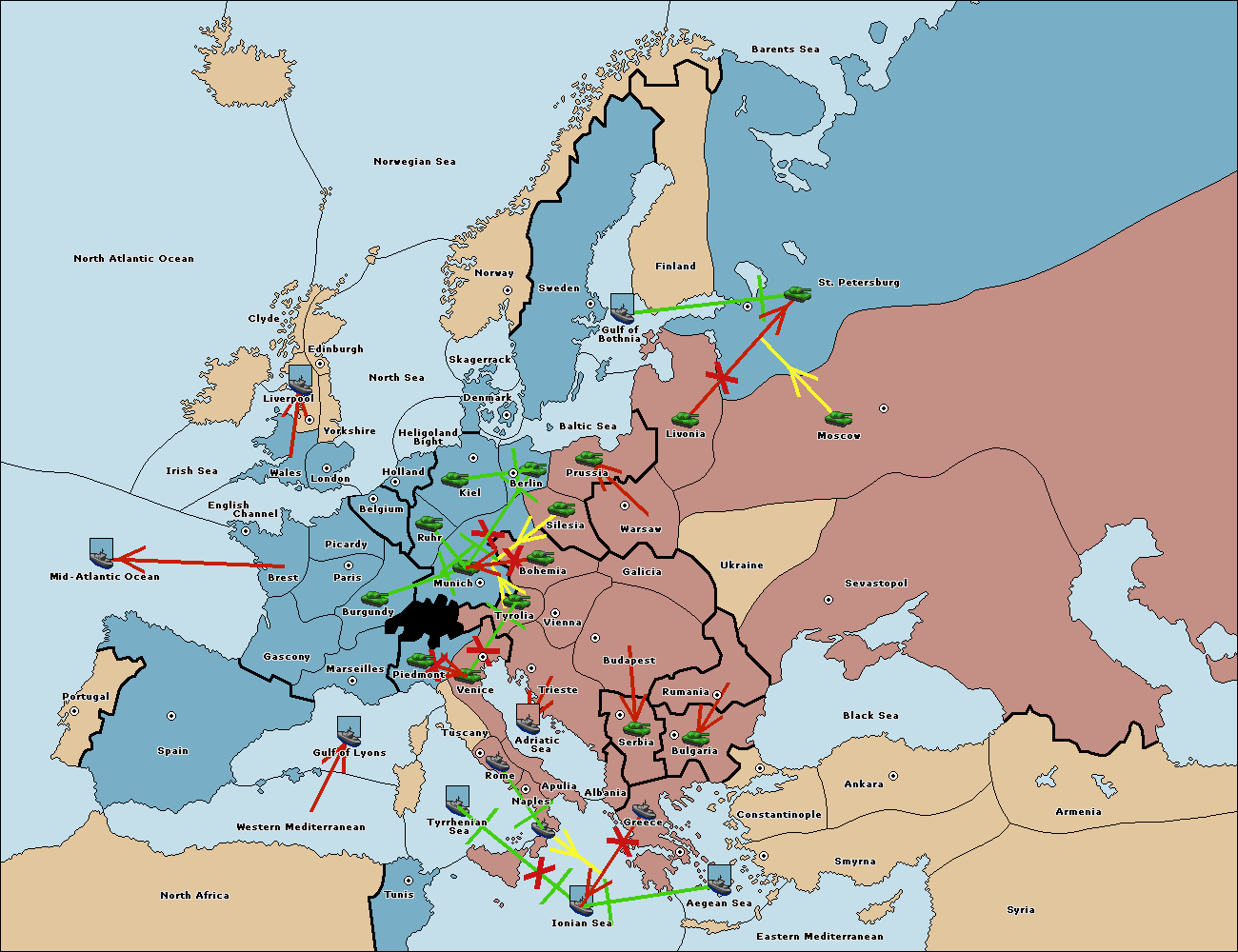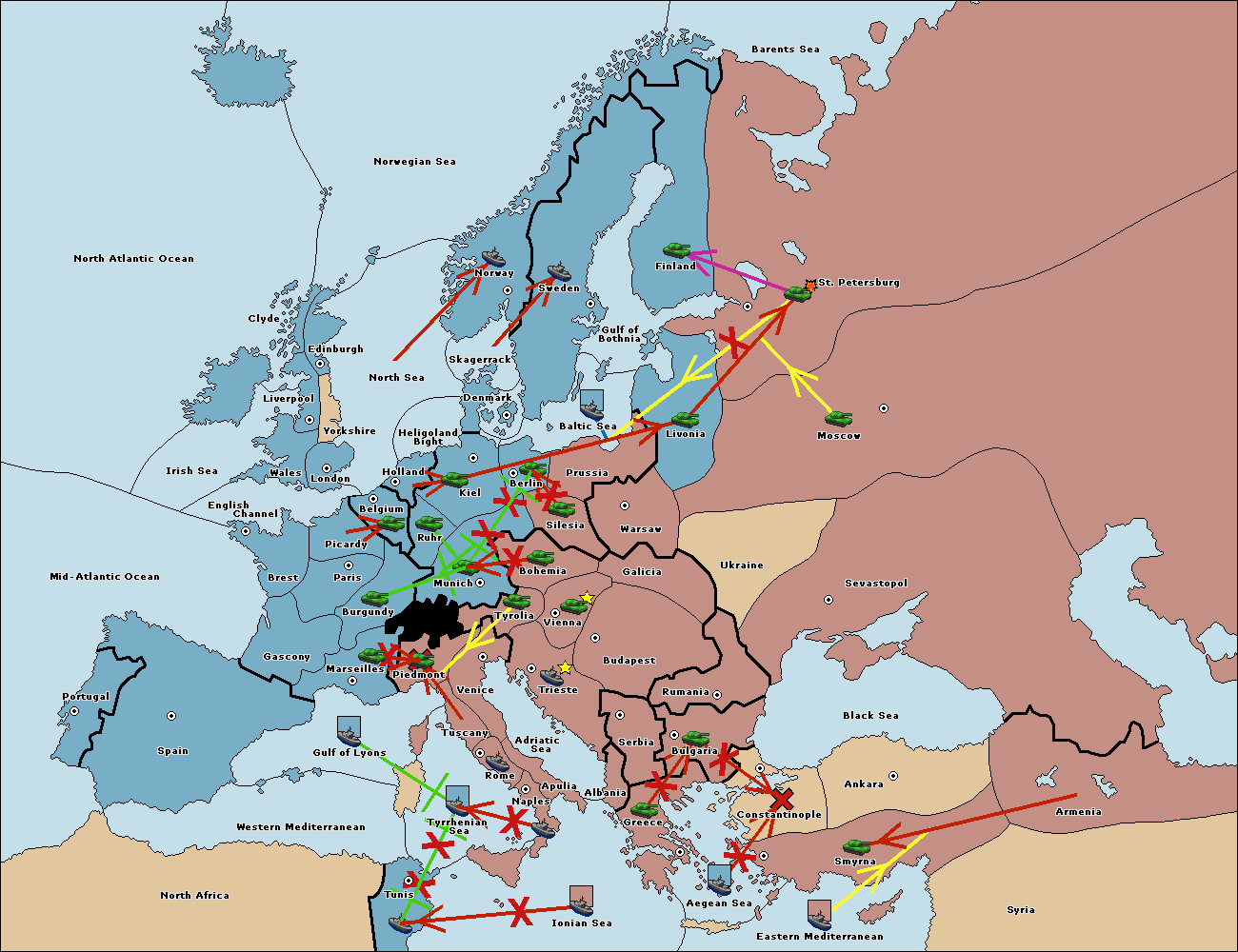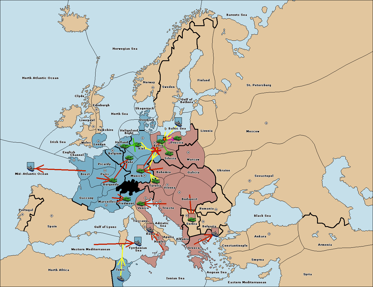 The fleet at Aegean Sea support move to Ionian Sea from Tunis.