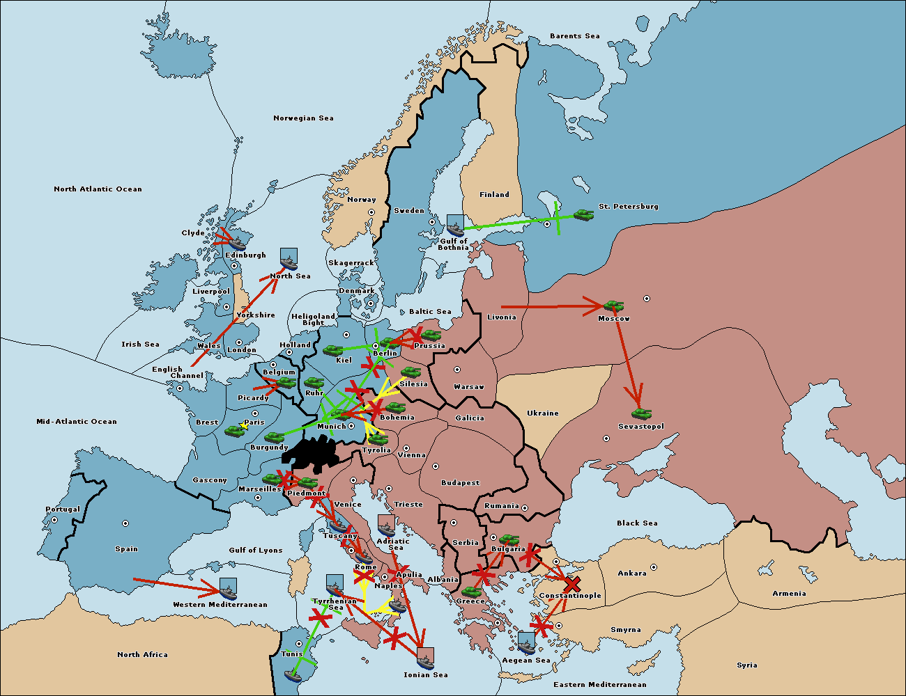 The fleet at Tyrrhenian Sea support hold to Tunis.