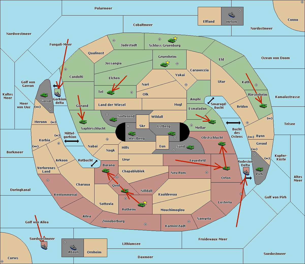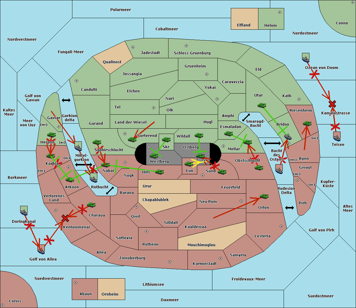 The fleet at Schloss Gruenburg move to Ozean von Doom.