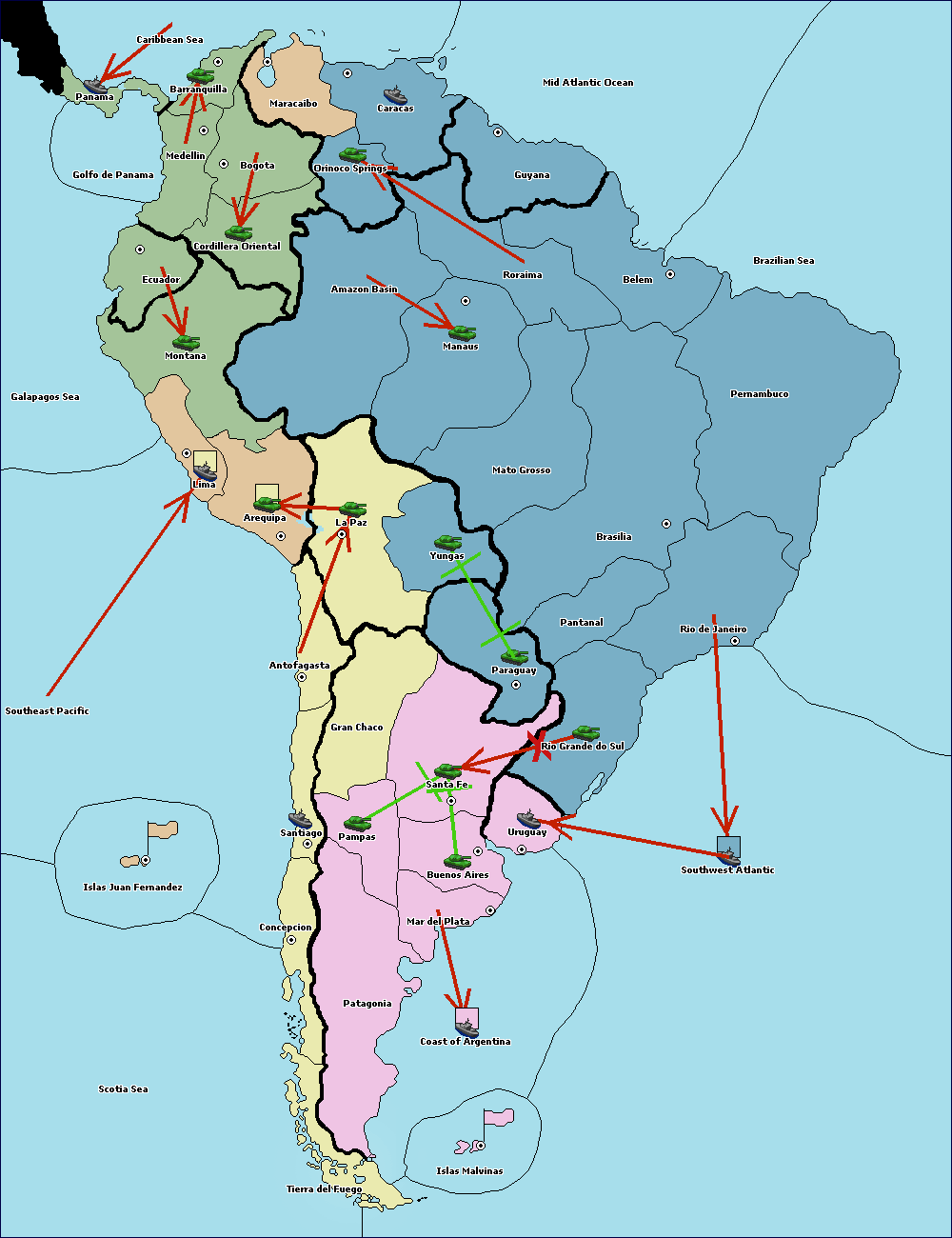 Build army at Rio de Janeiro.