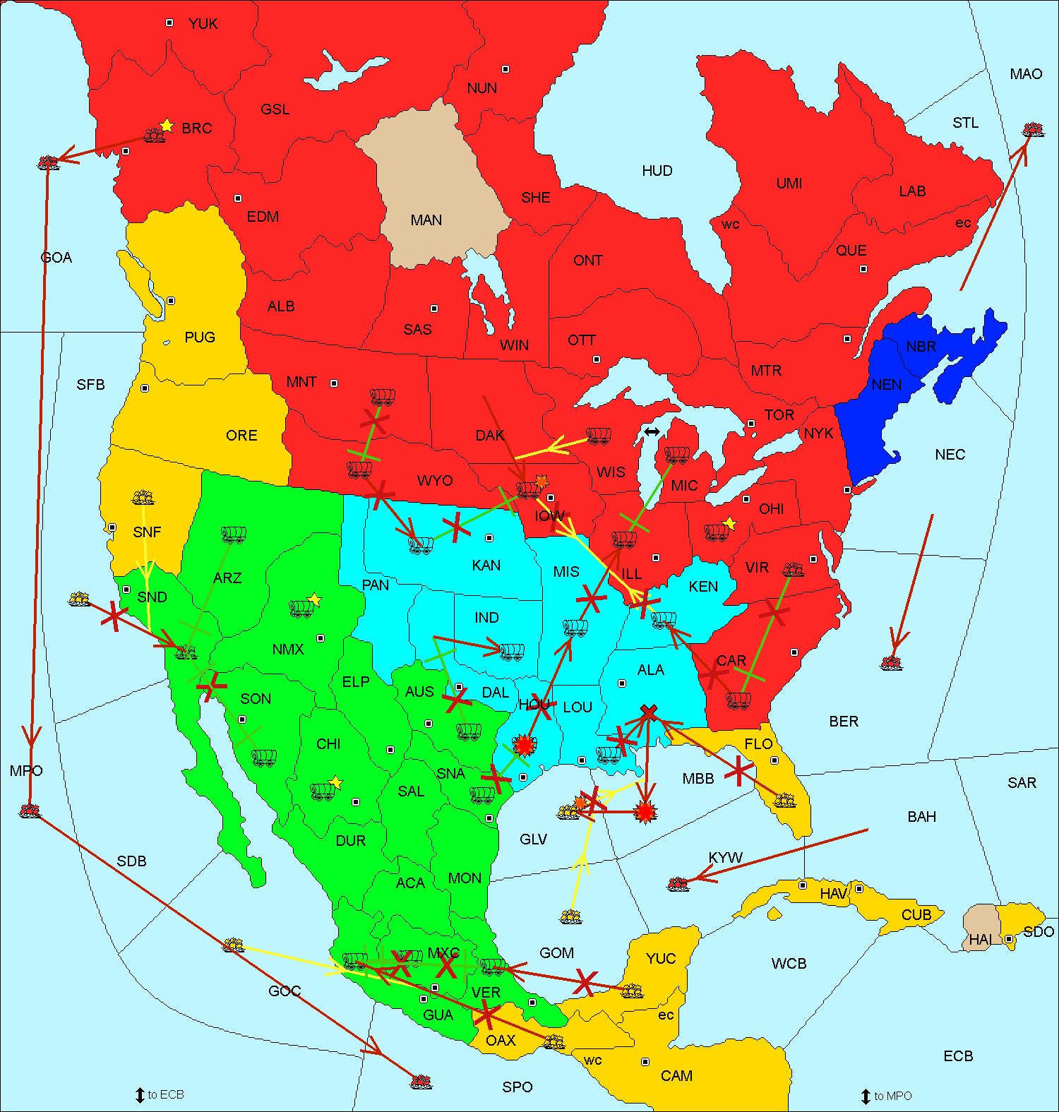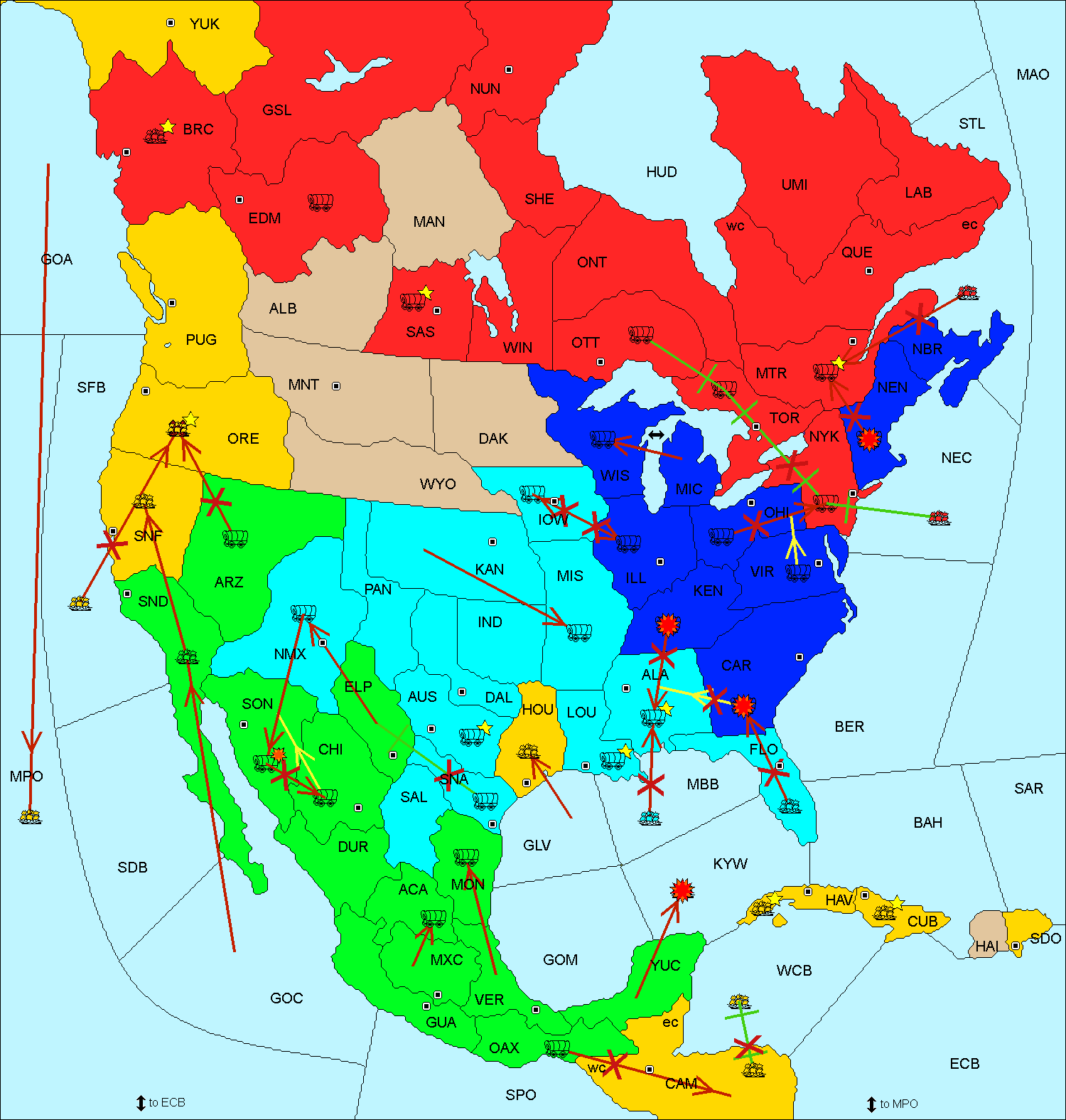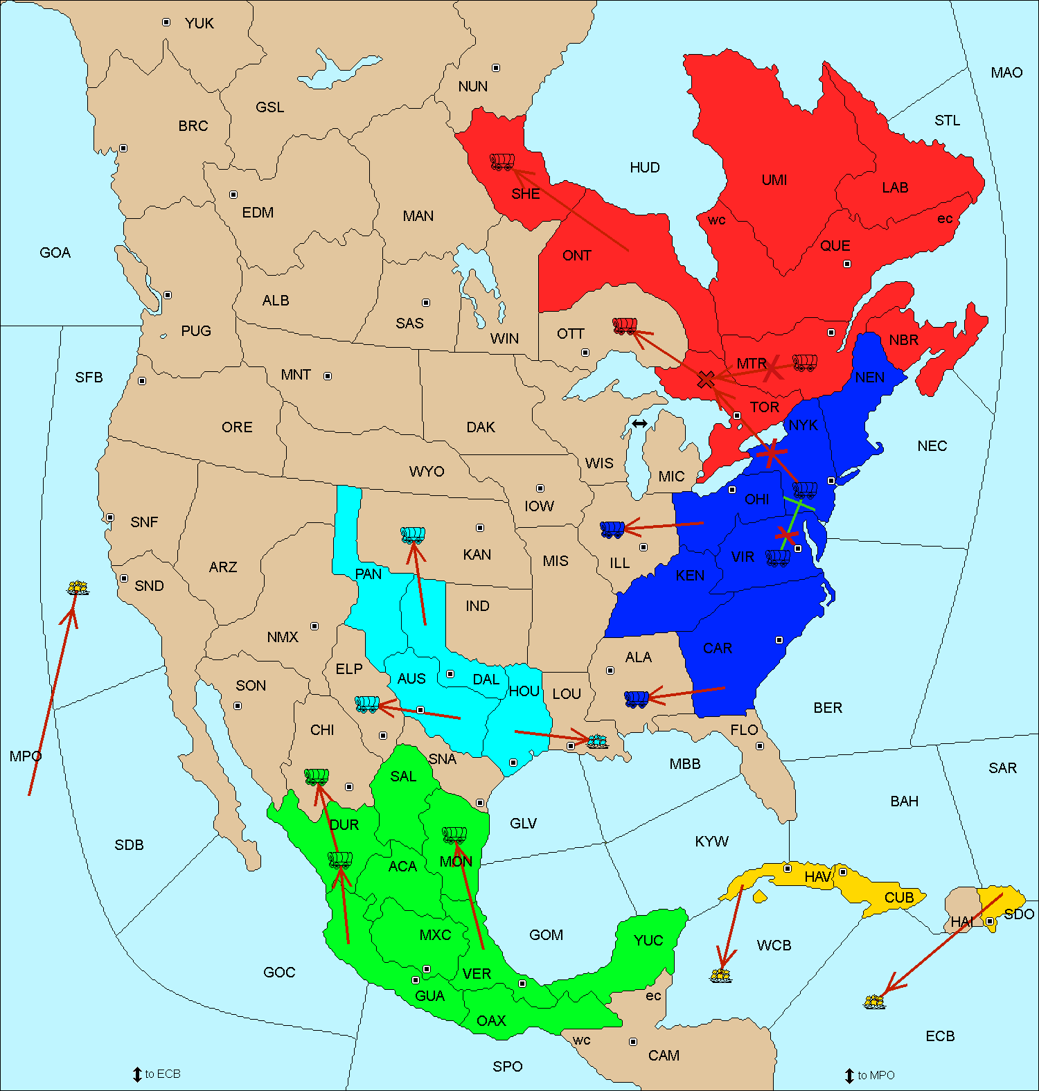 The fleet at Central America (East Coast) move to Yucatan.