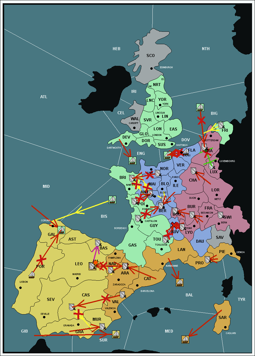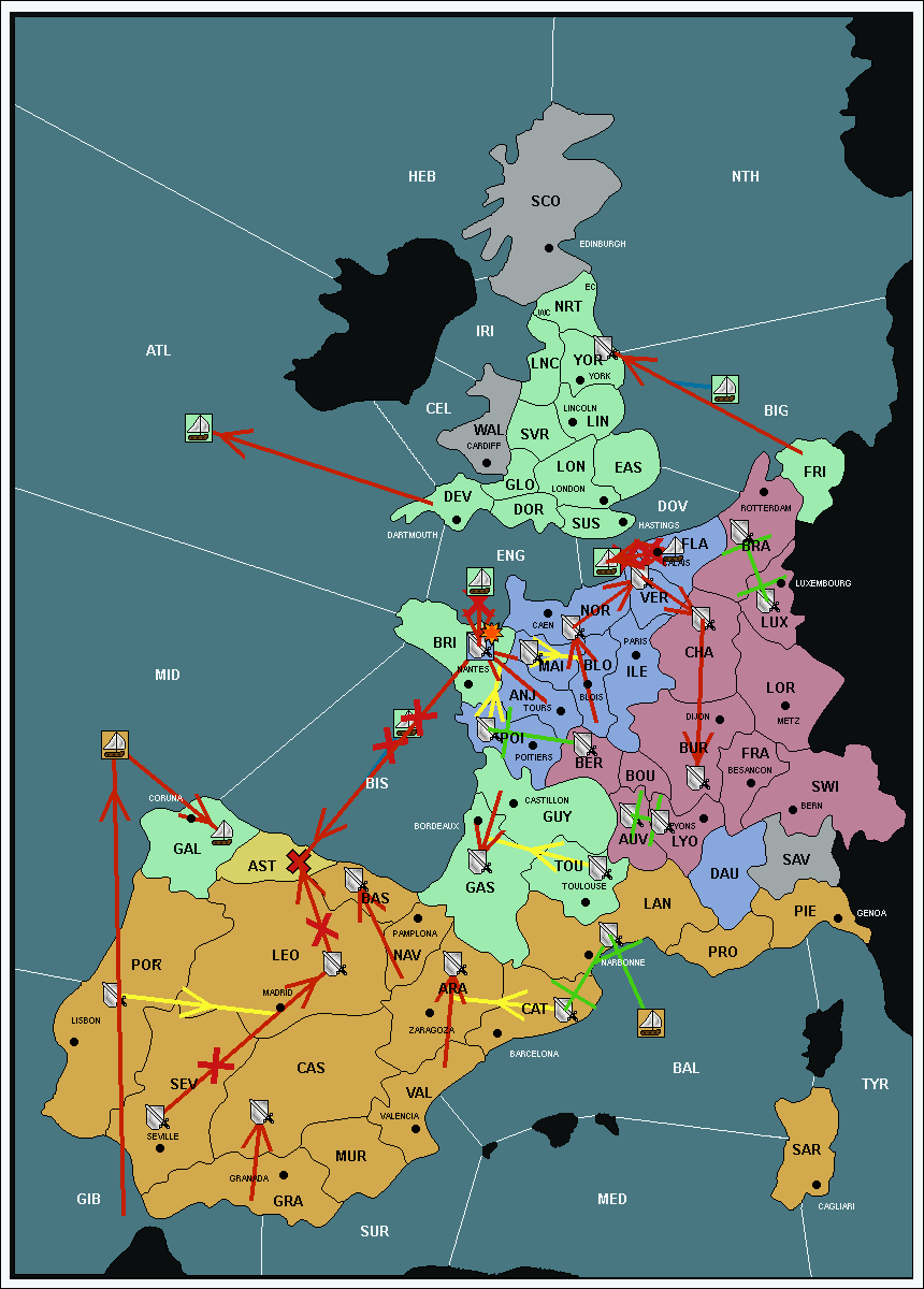 The fleet at Bay of Biscay (BIS) support hold to Brittany (BRI).