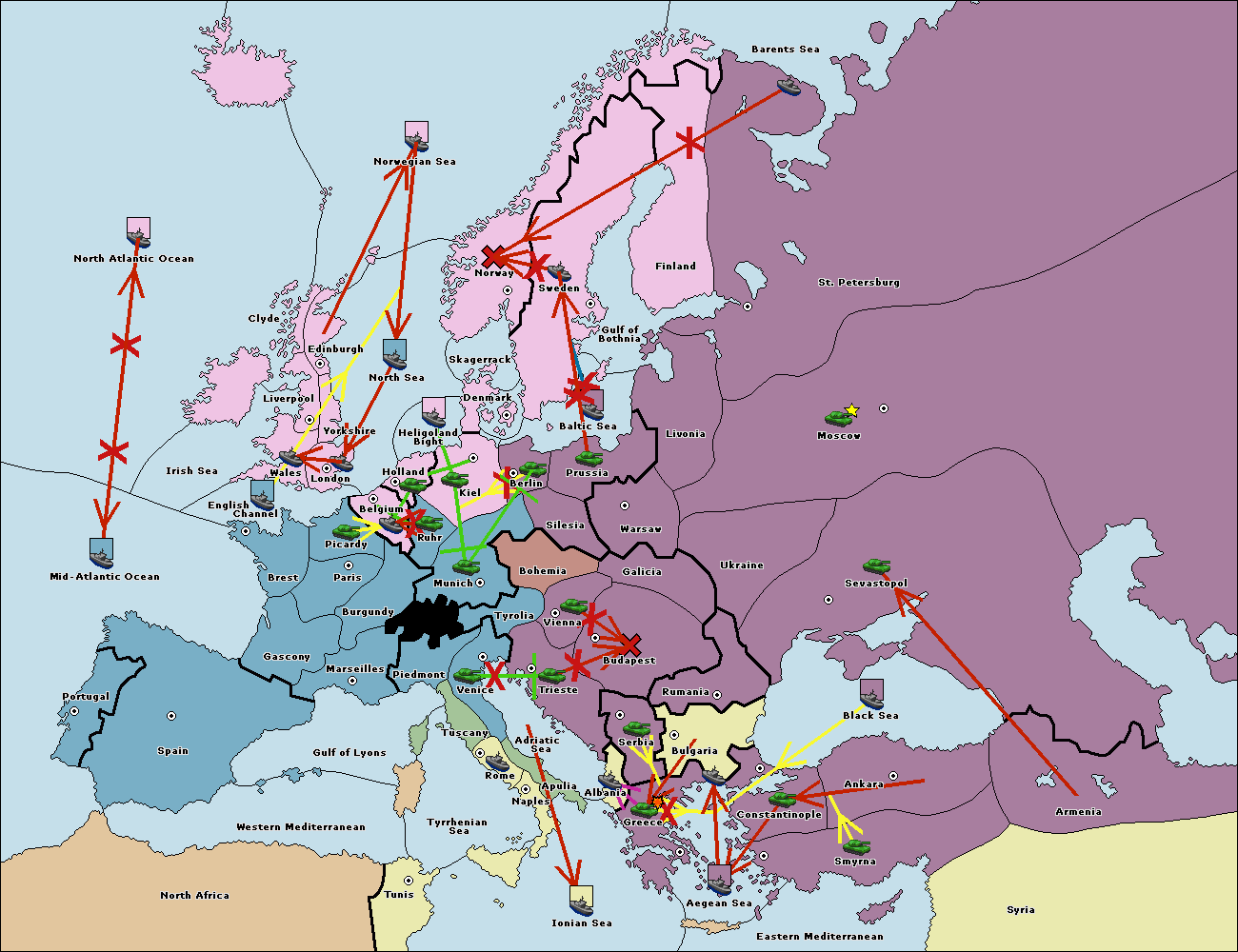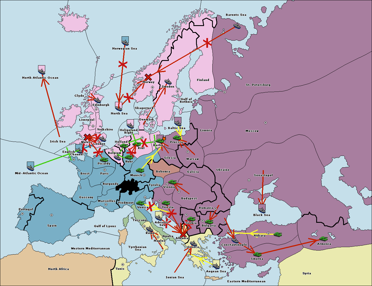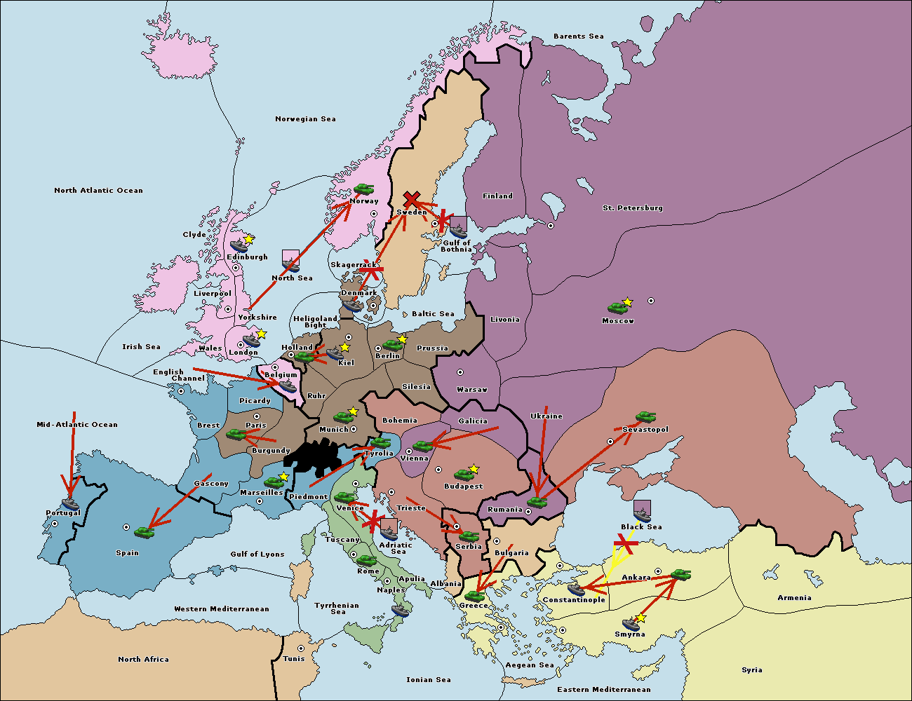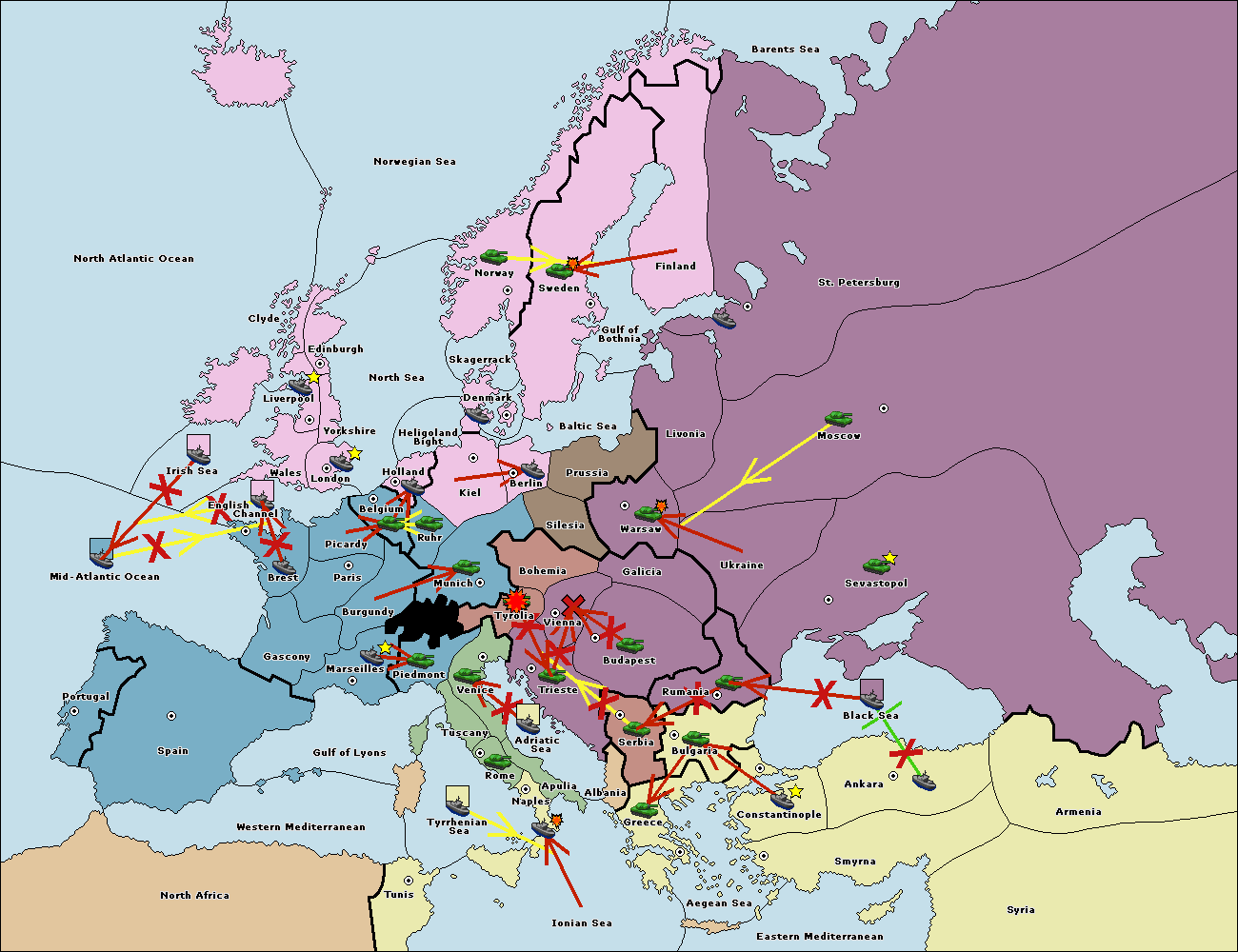 The fleet at Bulgaria (South Coast) move to Constantinople.
