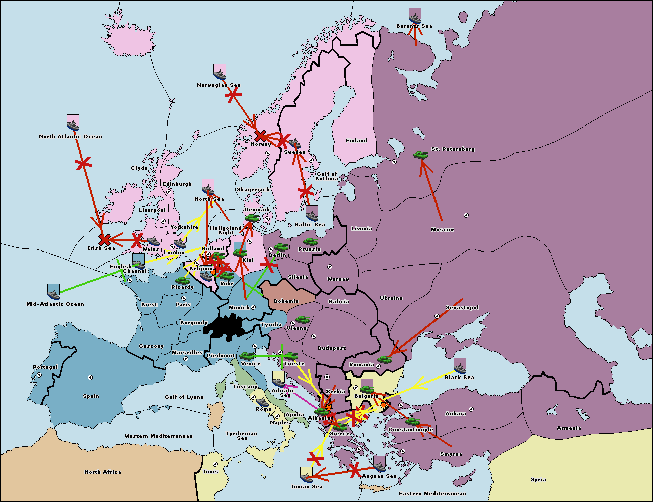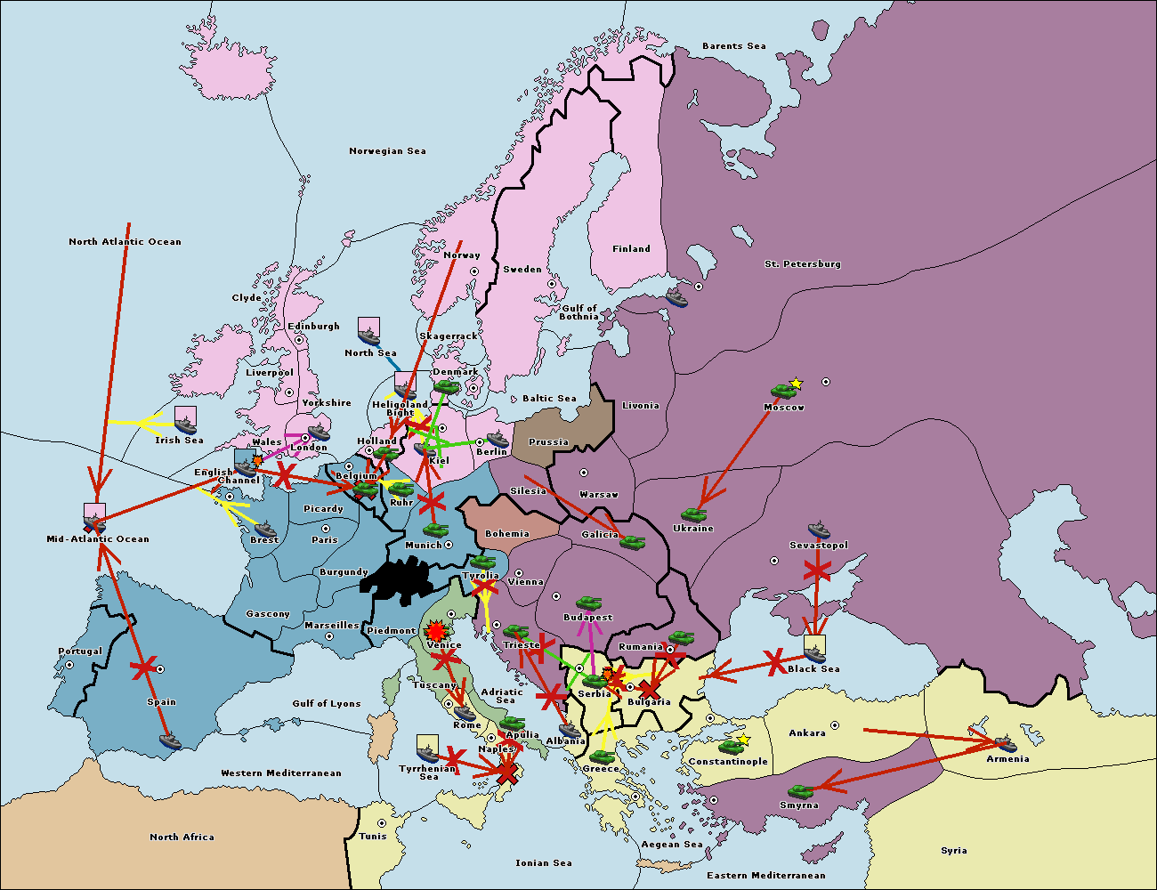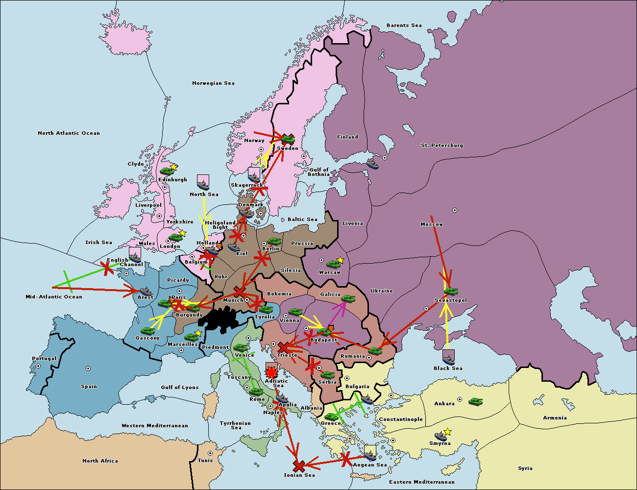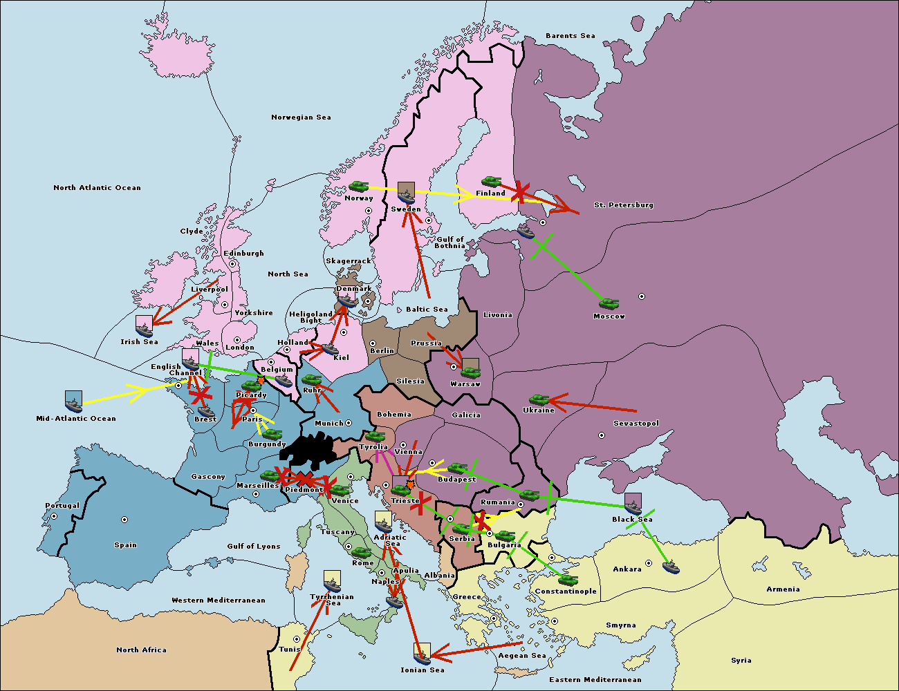 The fleet at Bulgaria (South Coast) move to Constantinople.