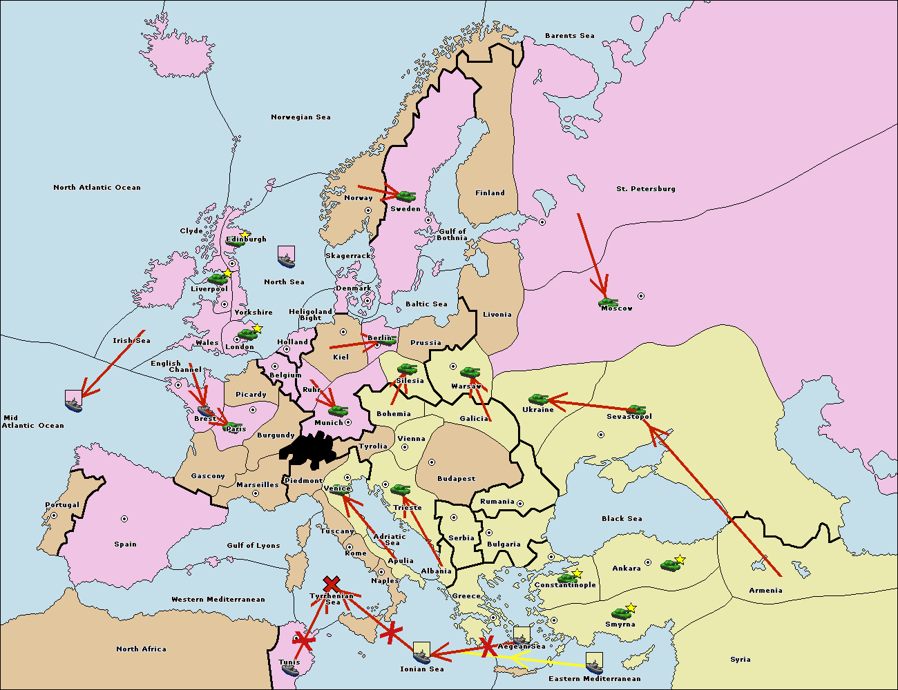 The fleet at Mid-Atlantic Ocean move to Western Mediterranean.