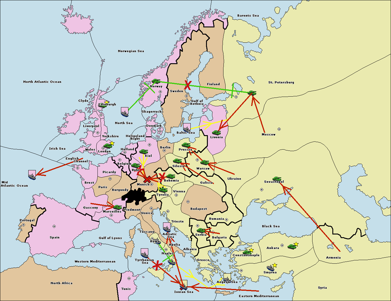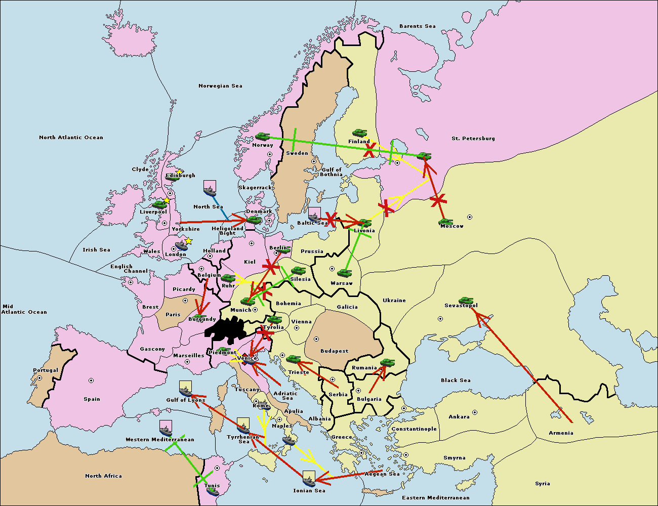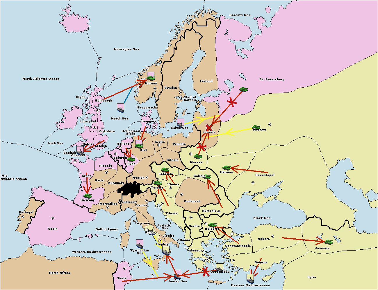 The fleet at Bulgaria (South Coast) move to Aegean Sea.