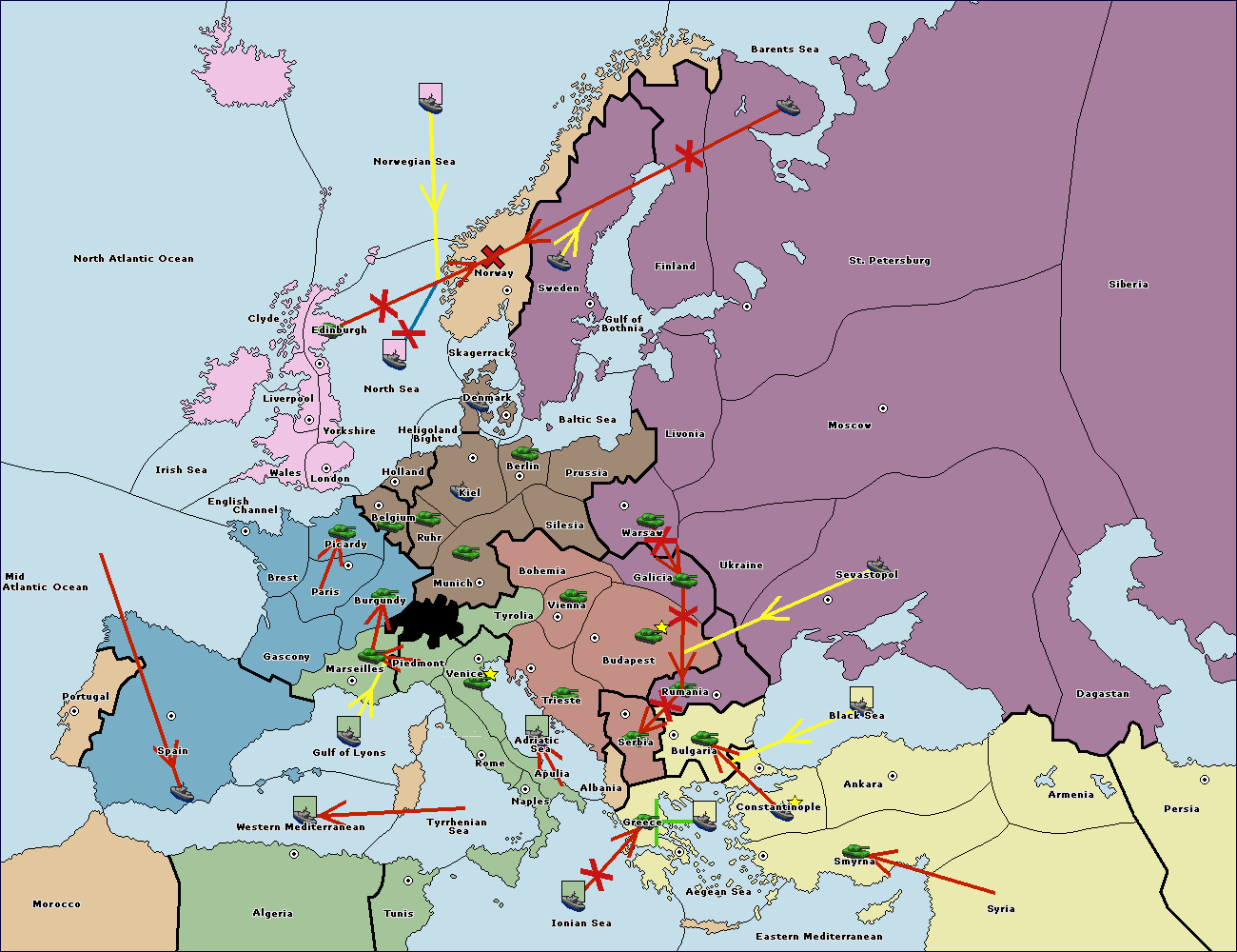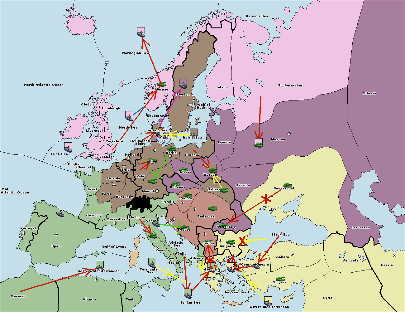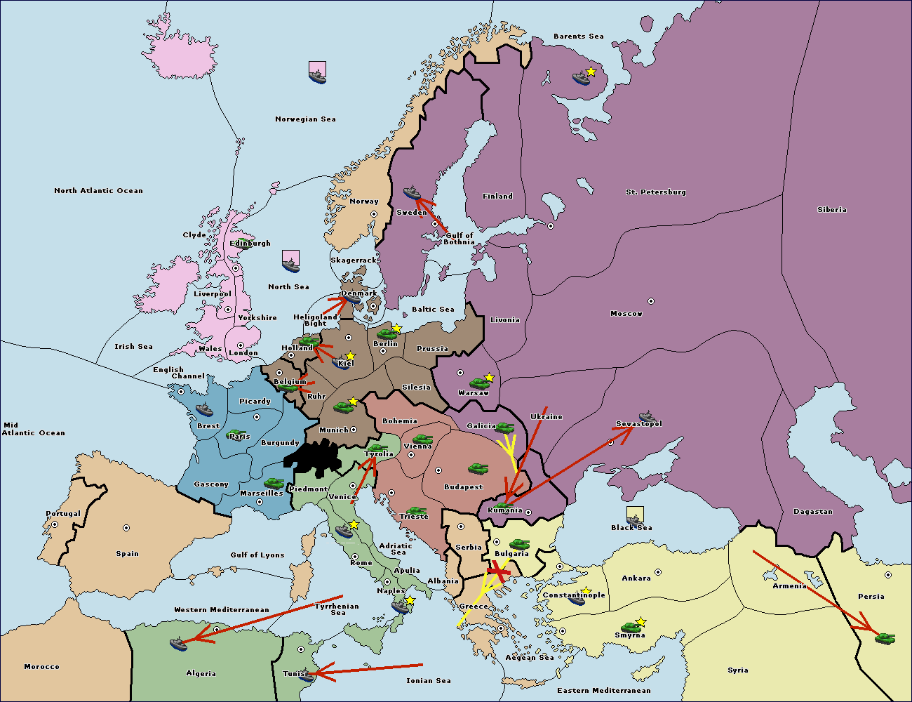 The fleet at Black Sea support move to Bulgaria from Constantinople.
