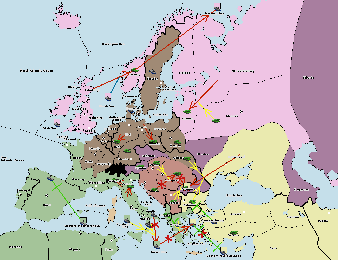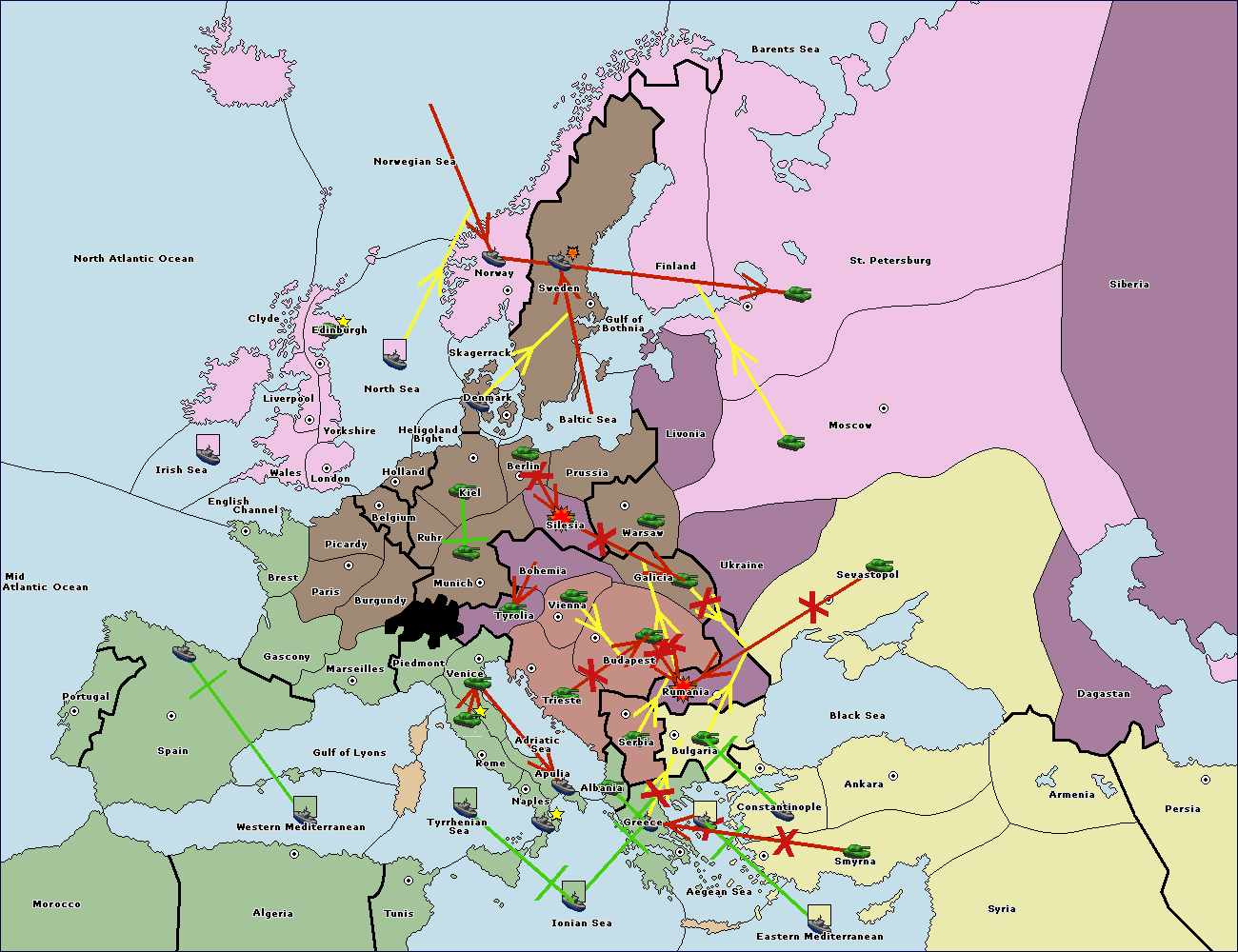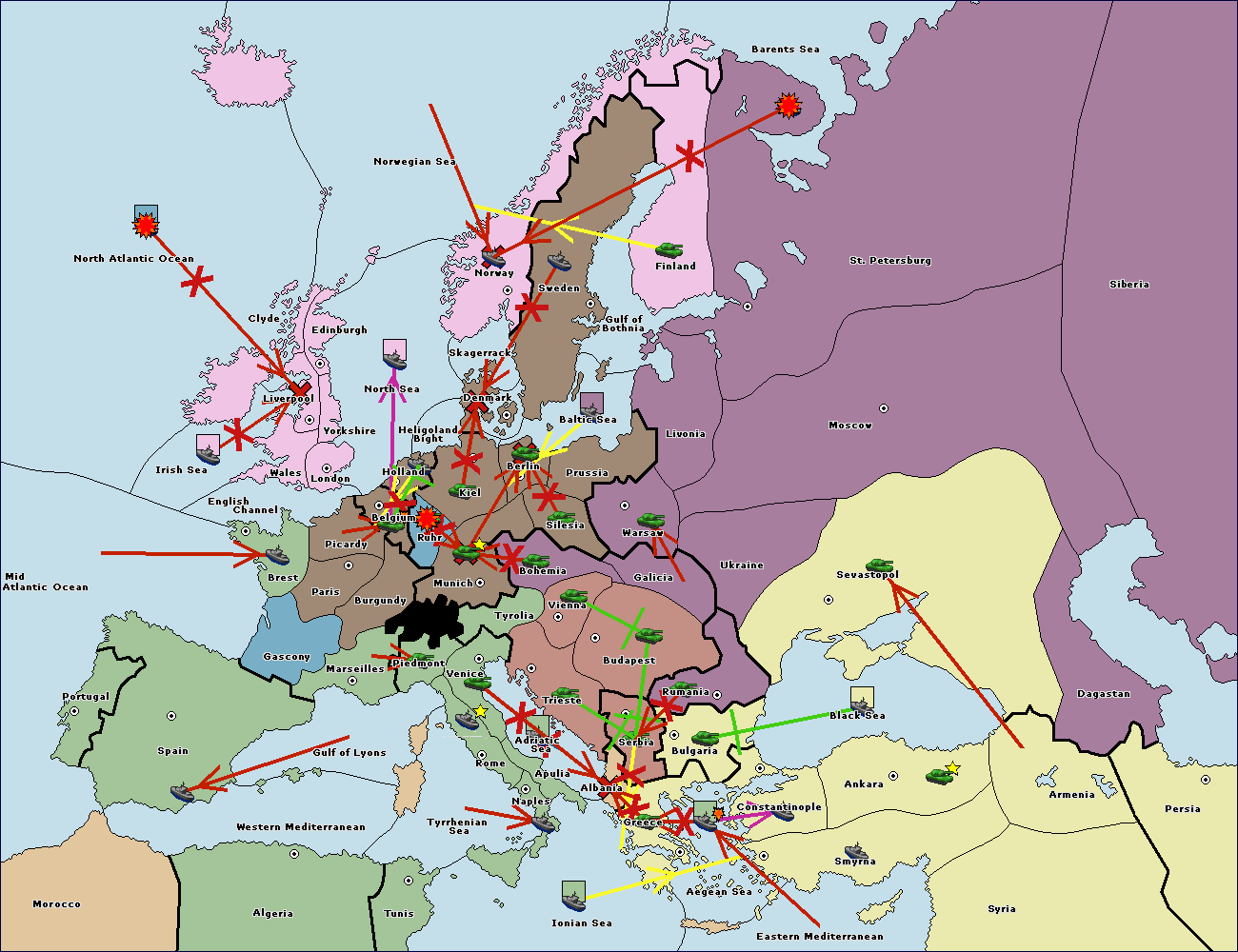 The fleet at Black Sea support move to Bulgaria from Constantinople.