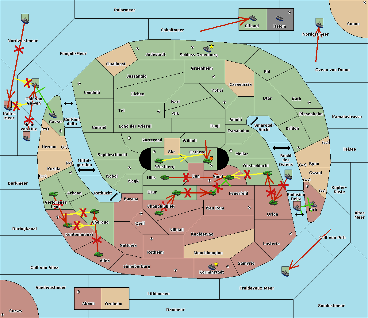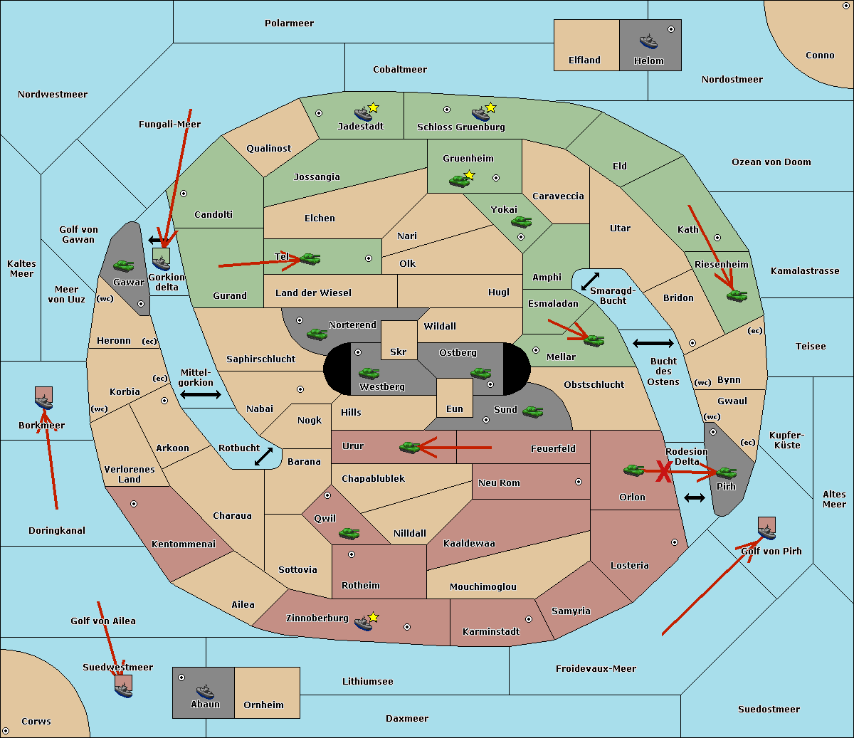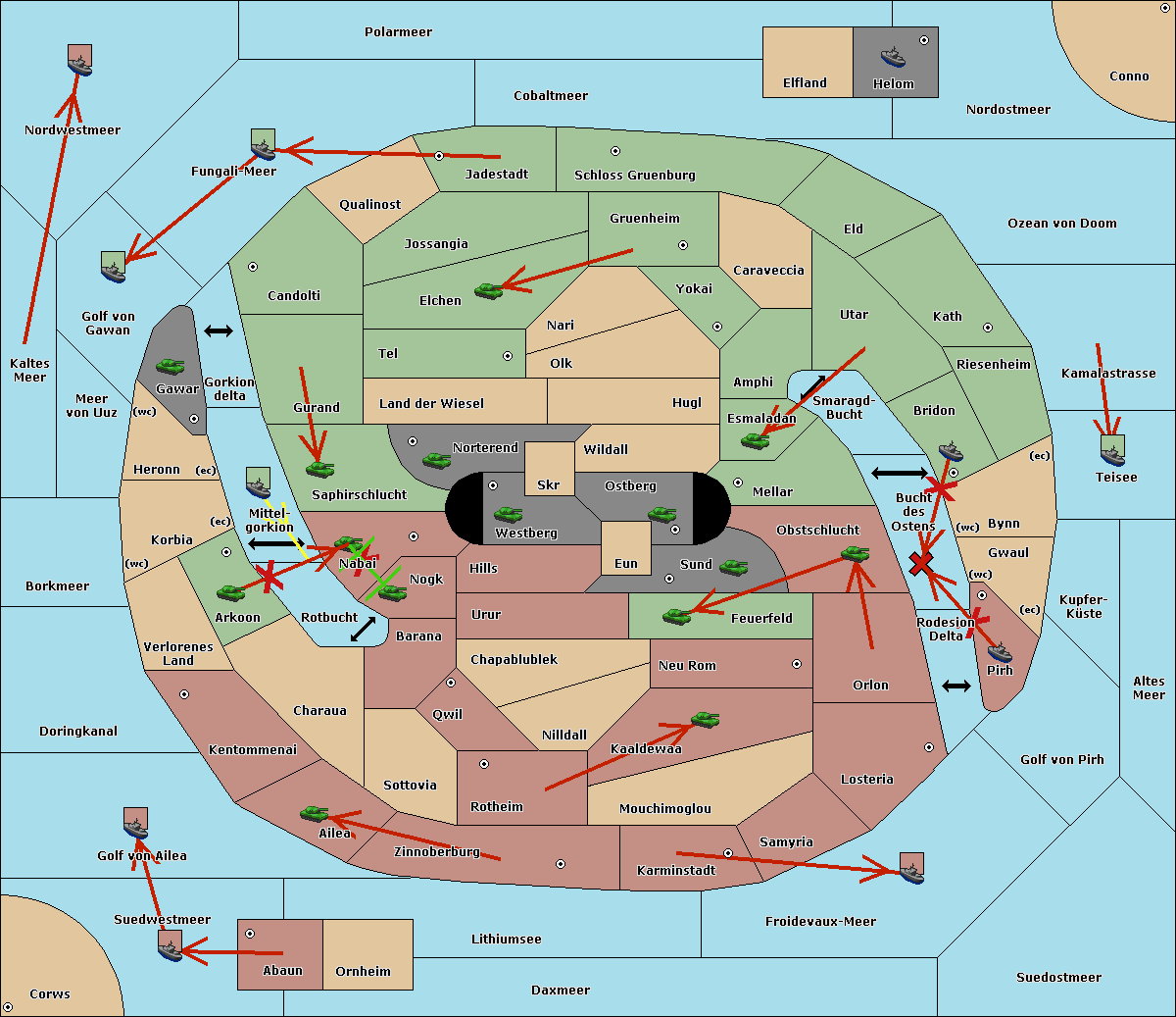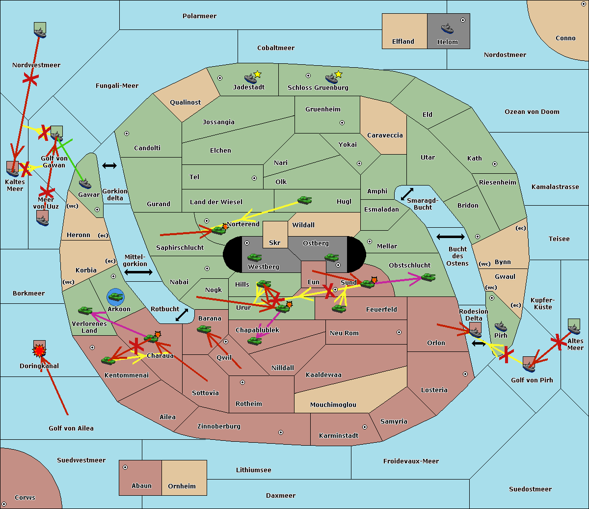 The fleet at Kaltes Meer move to Golf von Gawan.