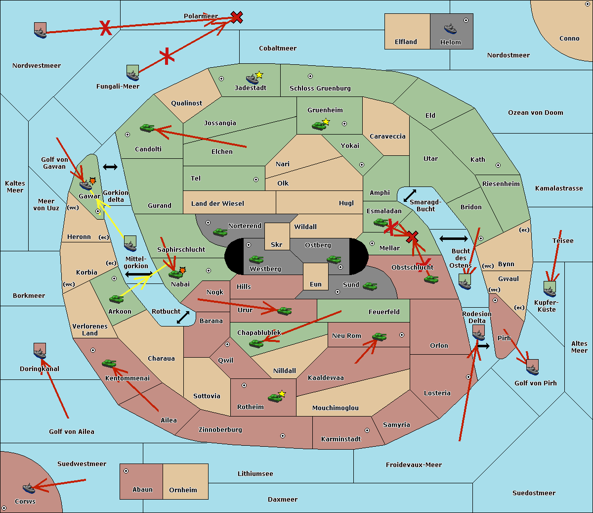 The fleet at Mitelgorkion support move to Gawar from Golf von Gawan.