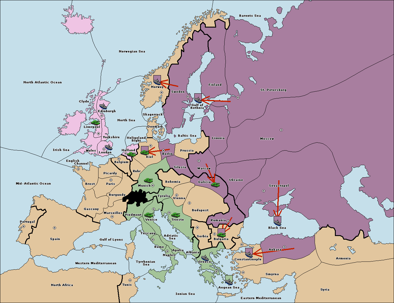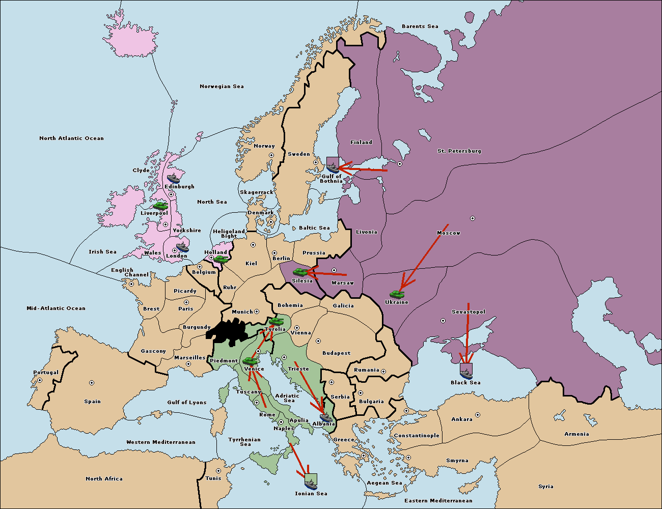 The fleet at St. Petersburg (South Coast) move to Gulf of Bothnia.