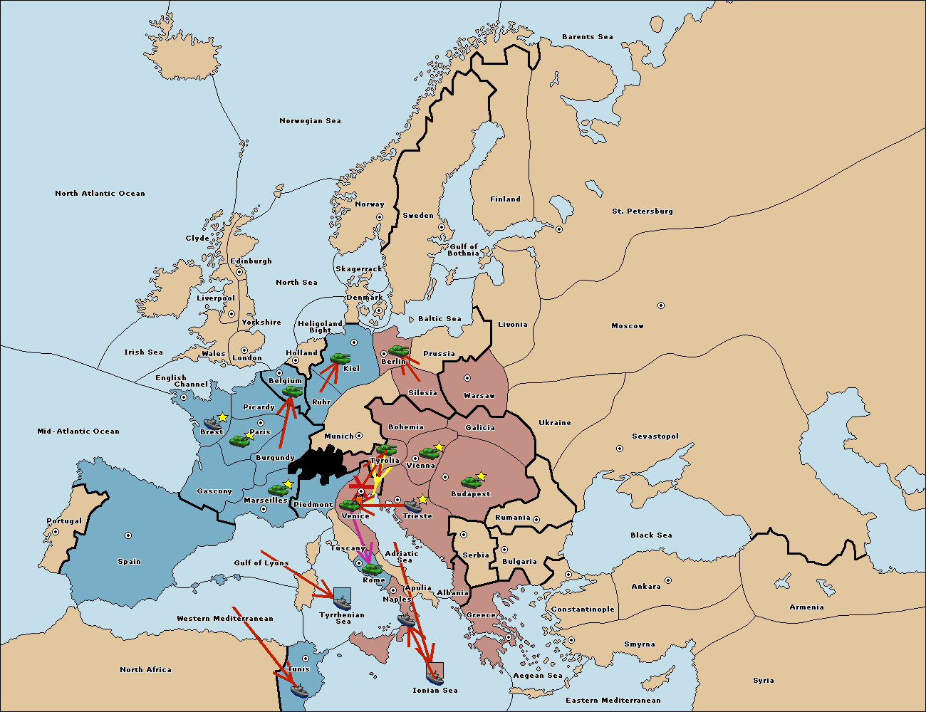 The fleet at Gulf of Lyons move to Tyrrhenian Sea.