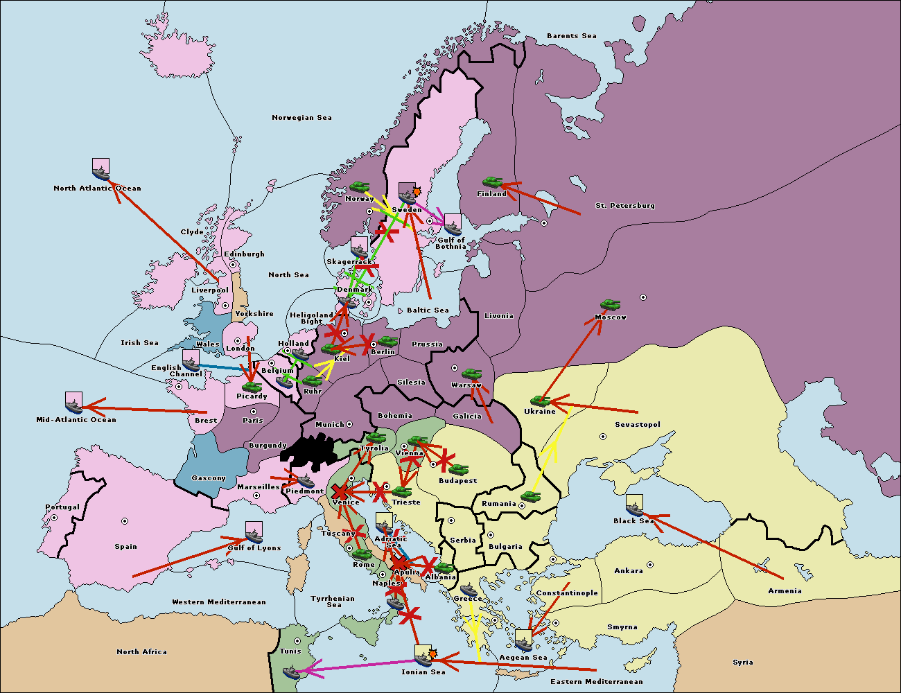The fleet at Bulgaria (South Coast) move to Aegean Sea.
