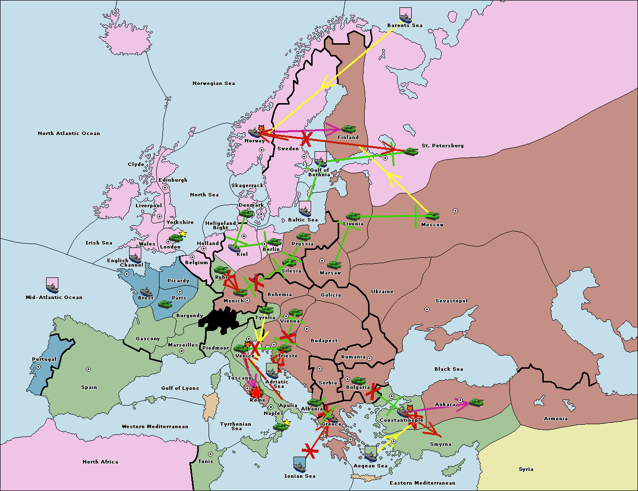 The army at Bulgaria support hold to Constantinople.