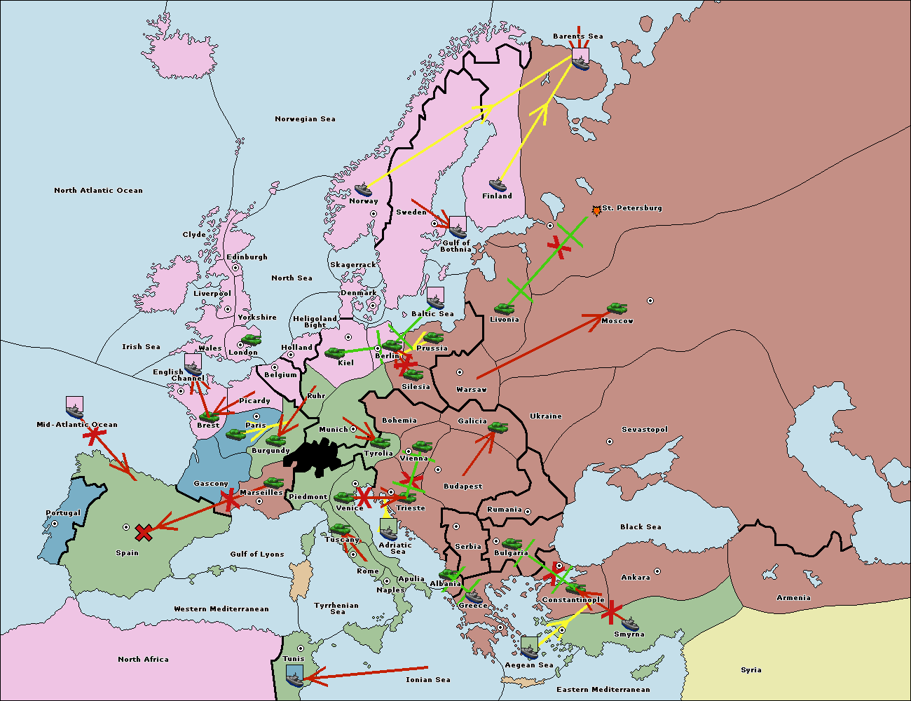 The fleet at Barents Sea move to St. Petersburg (North Coast).