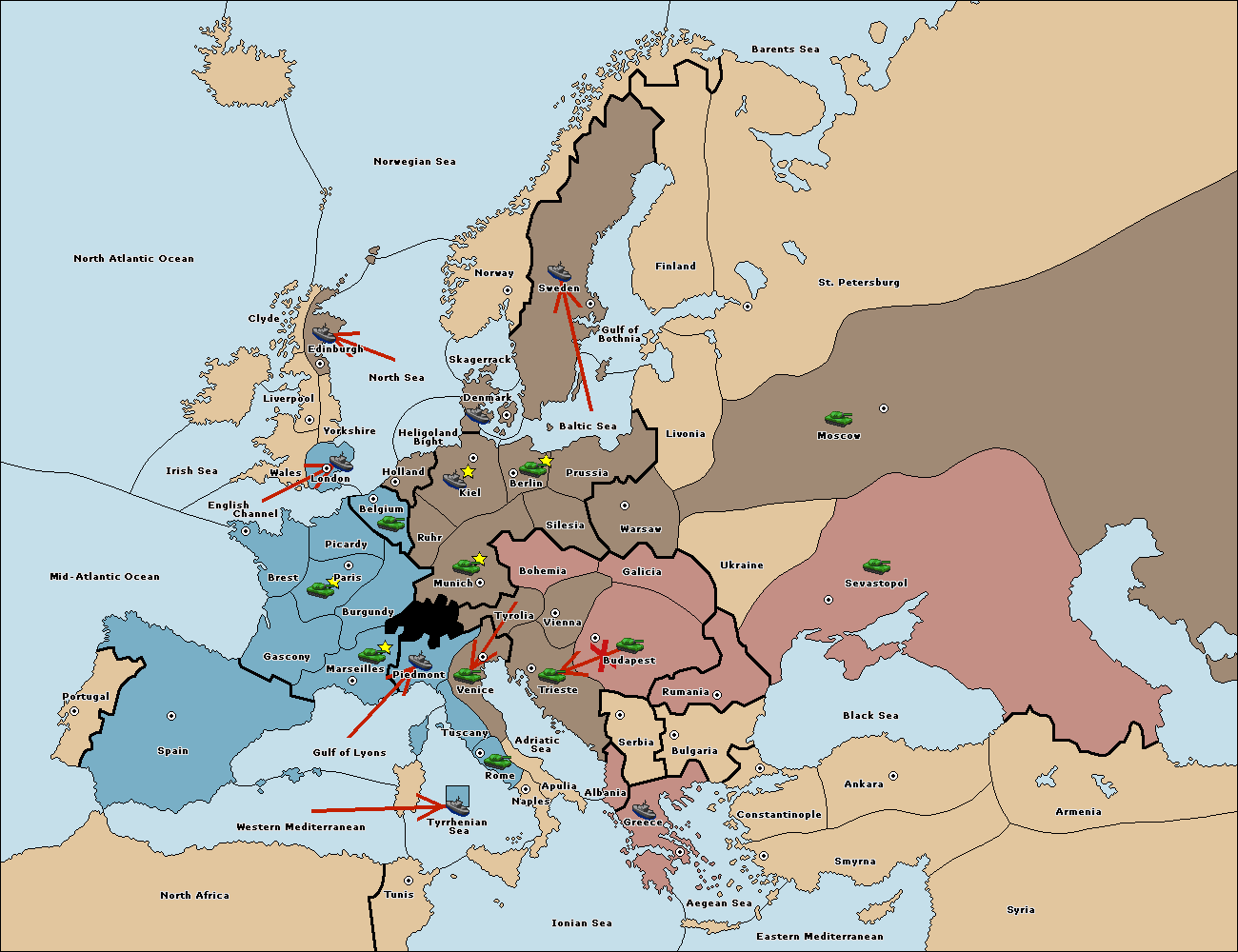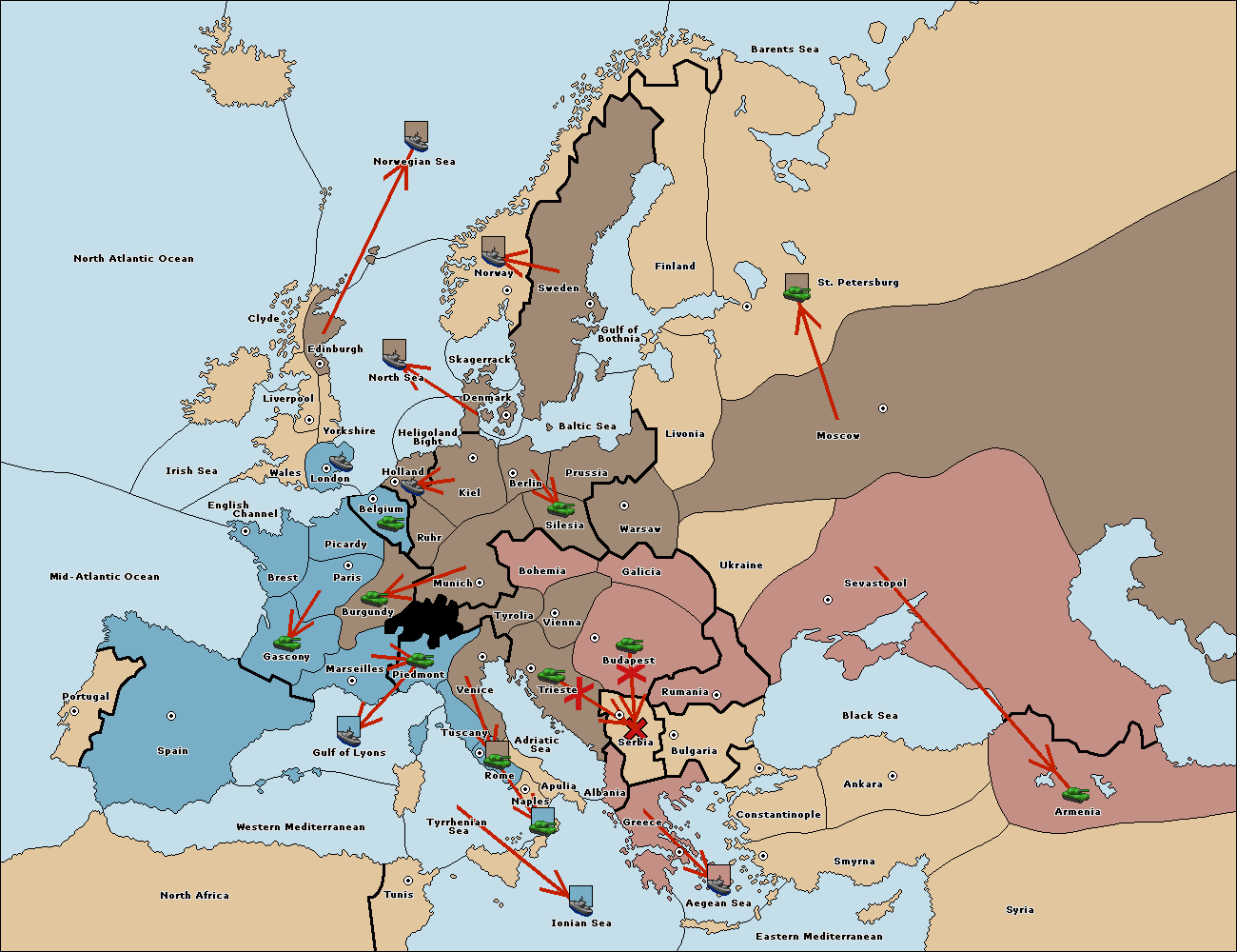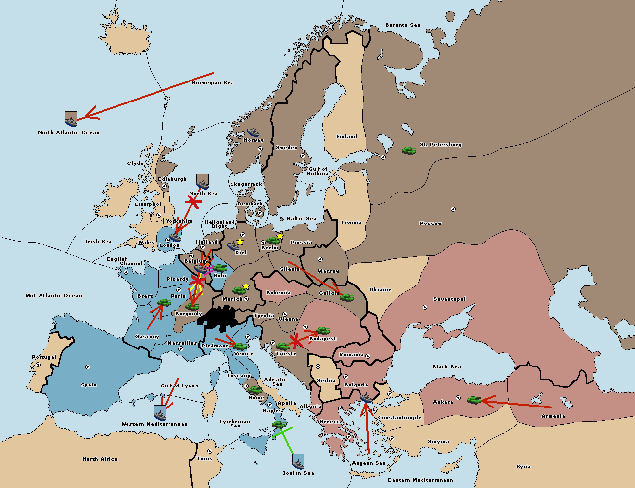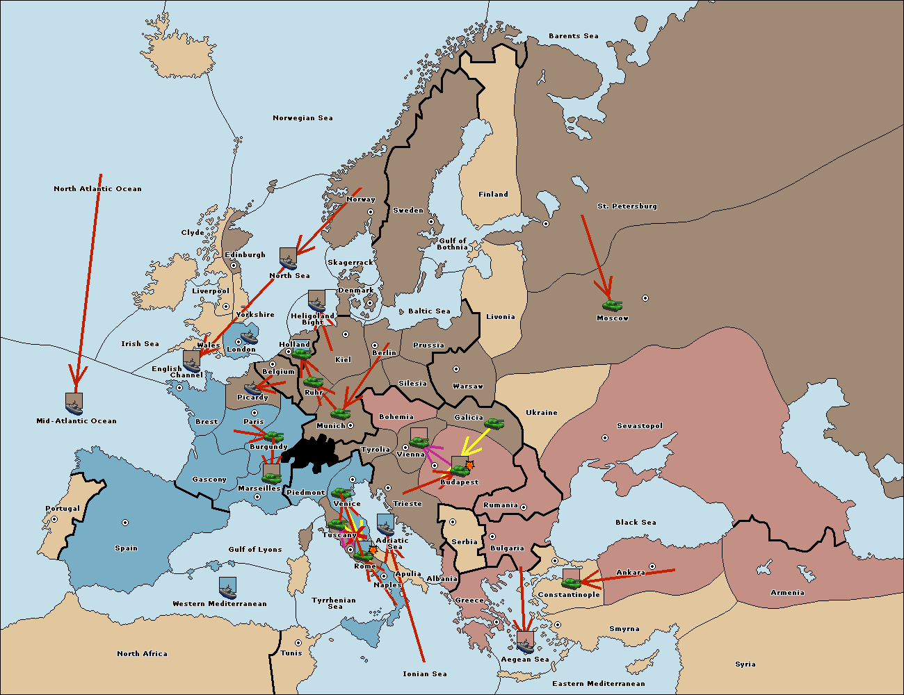 The fleet at Bulgaria (South Coast) move to Aegean Sea.