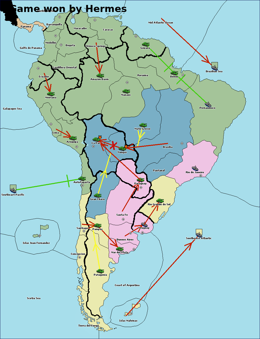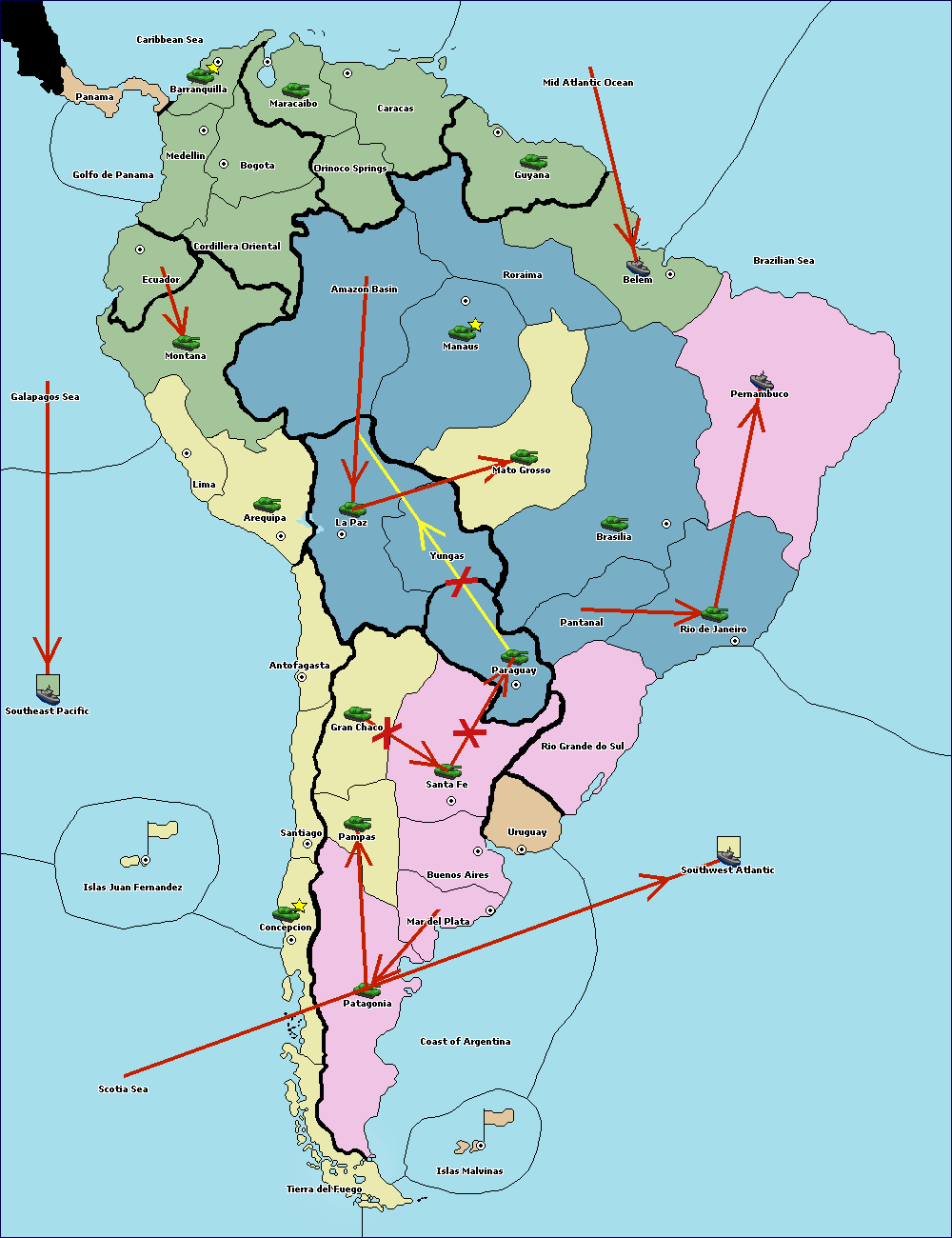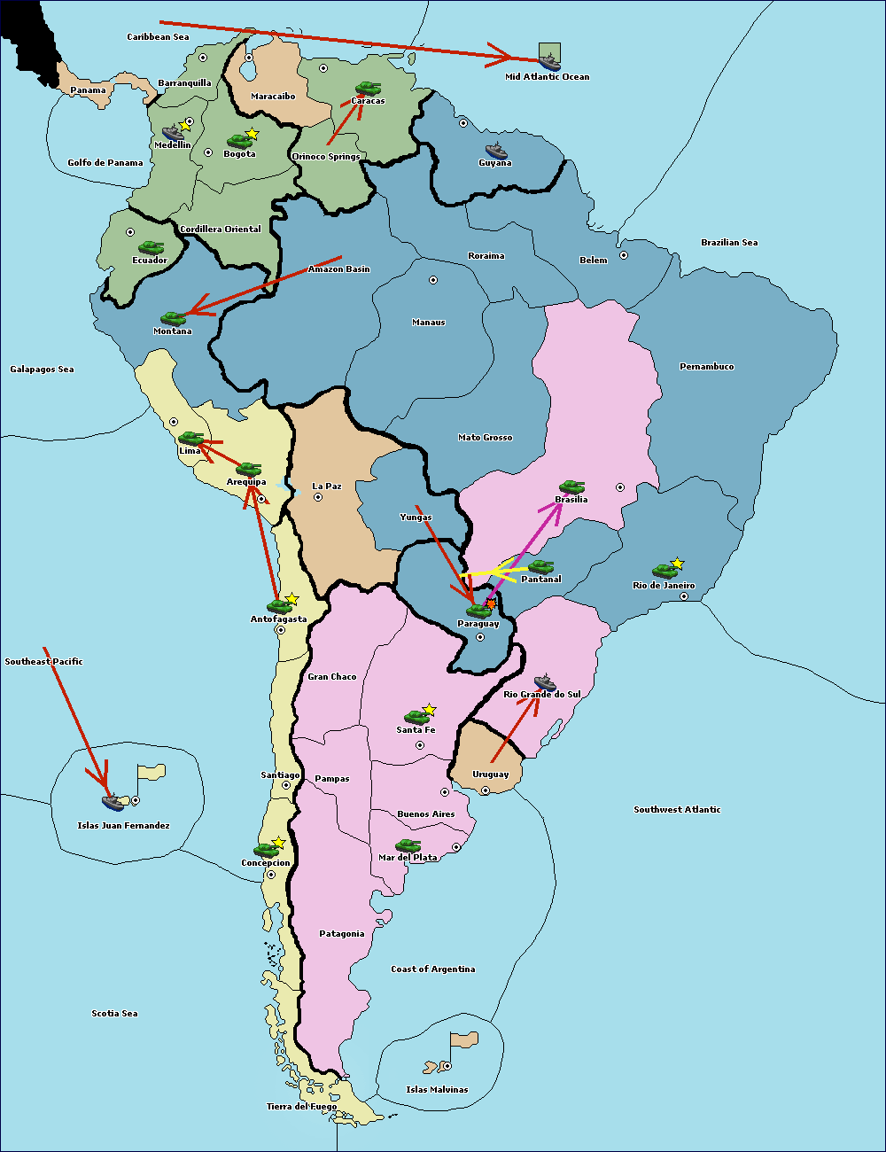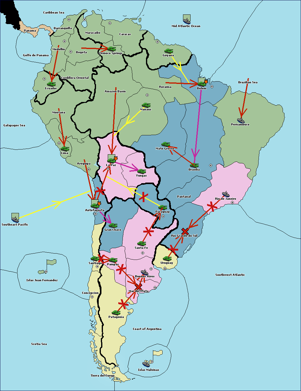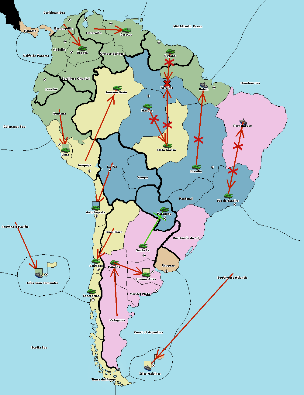 The army at Orinoco Springs move to Amazon Basin.