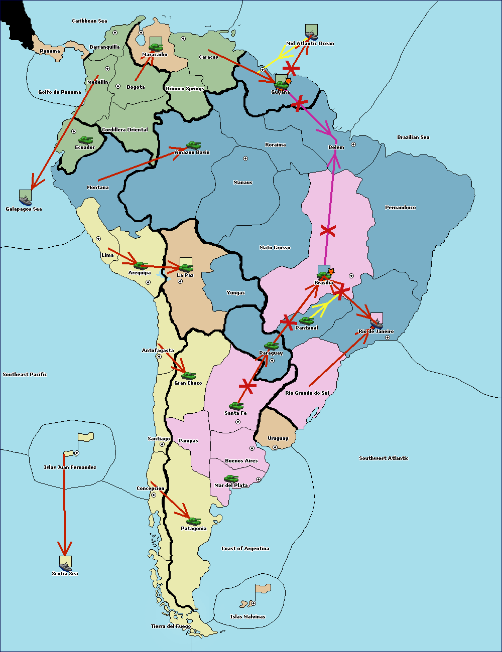 The fleet at Mid Atlantic Ocean move to Brazilian Sea.