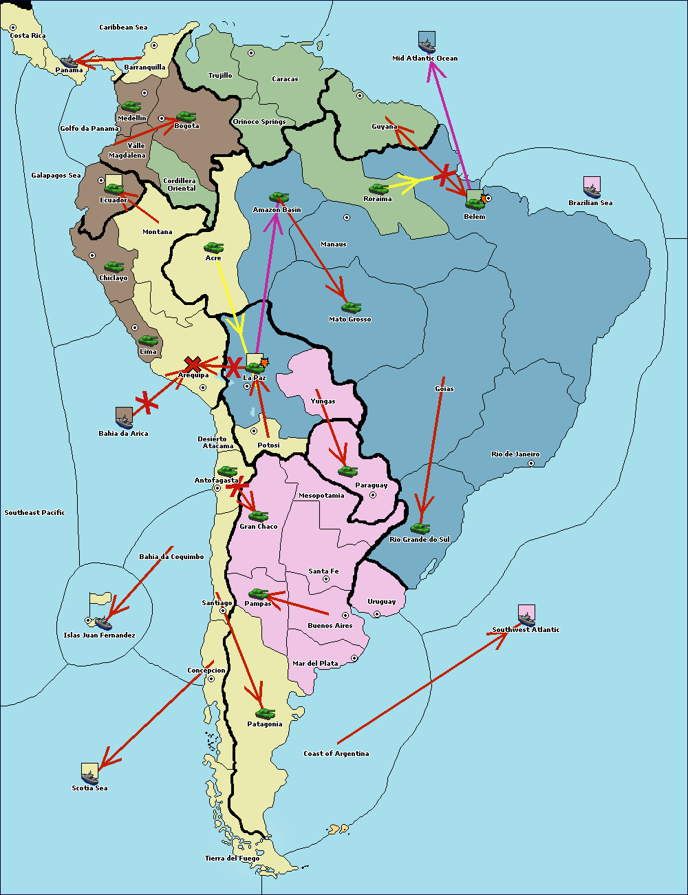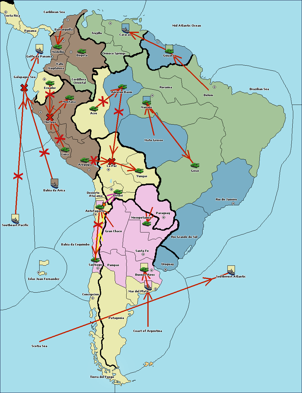 The fleet at Bahia da Arica support move to Arequipa from Lima.