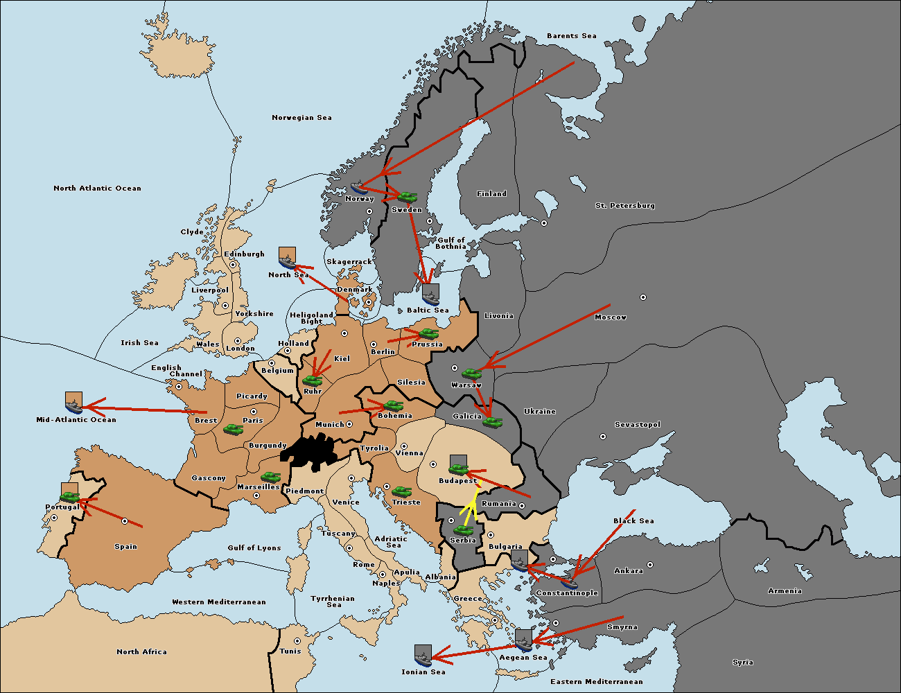 The fleet at Bulgaria (South Coast) move to Greece.
