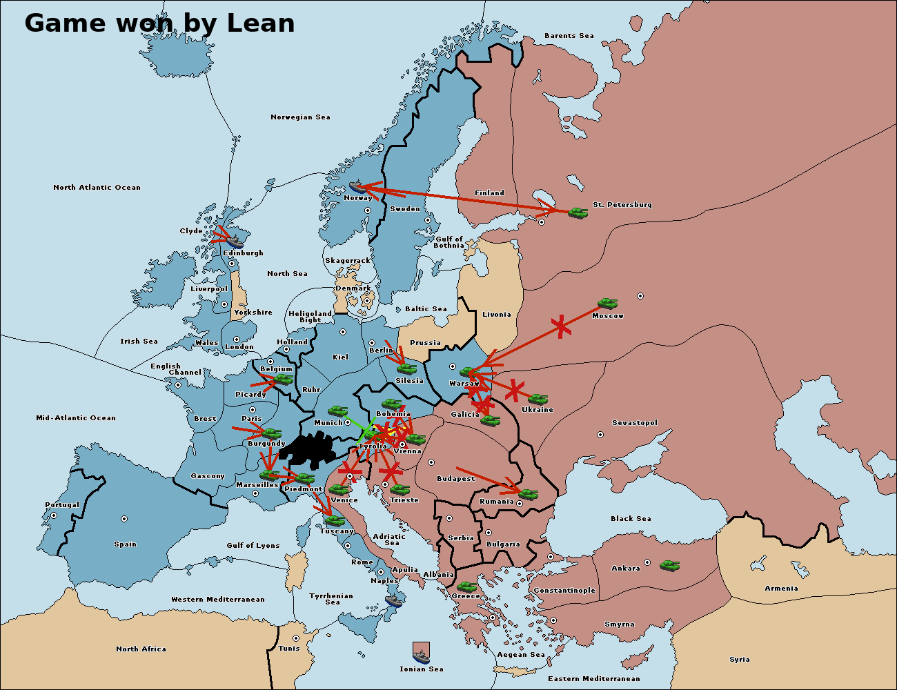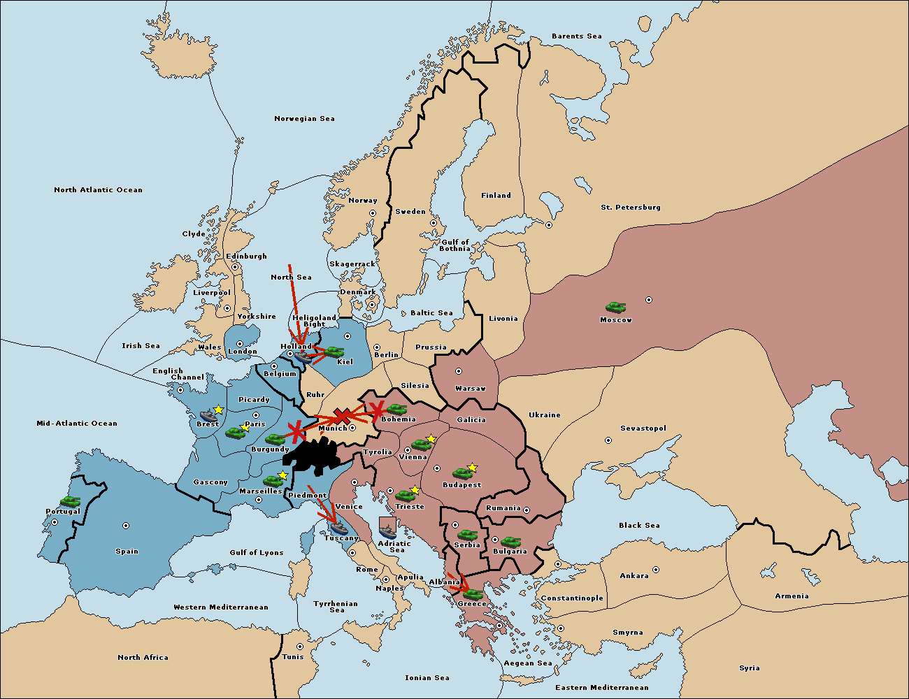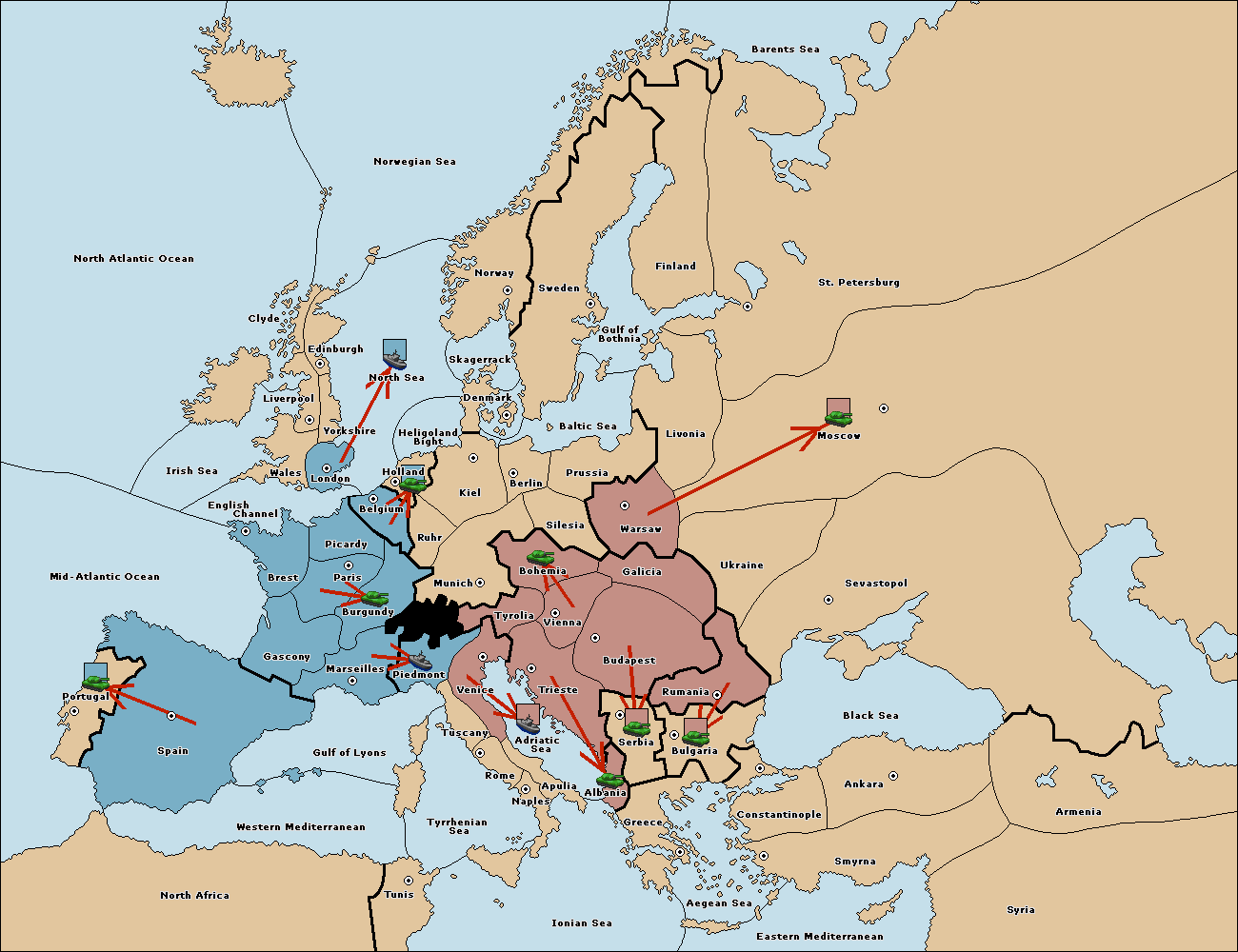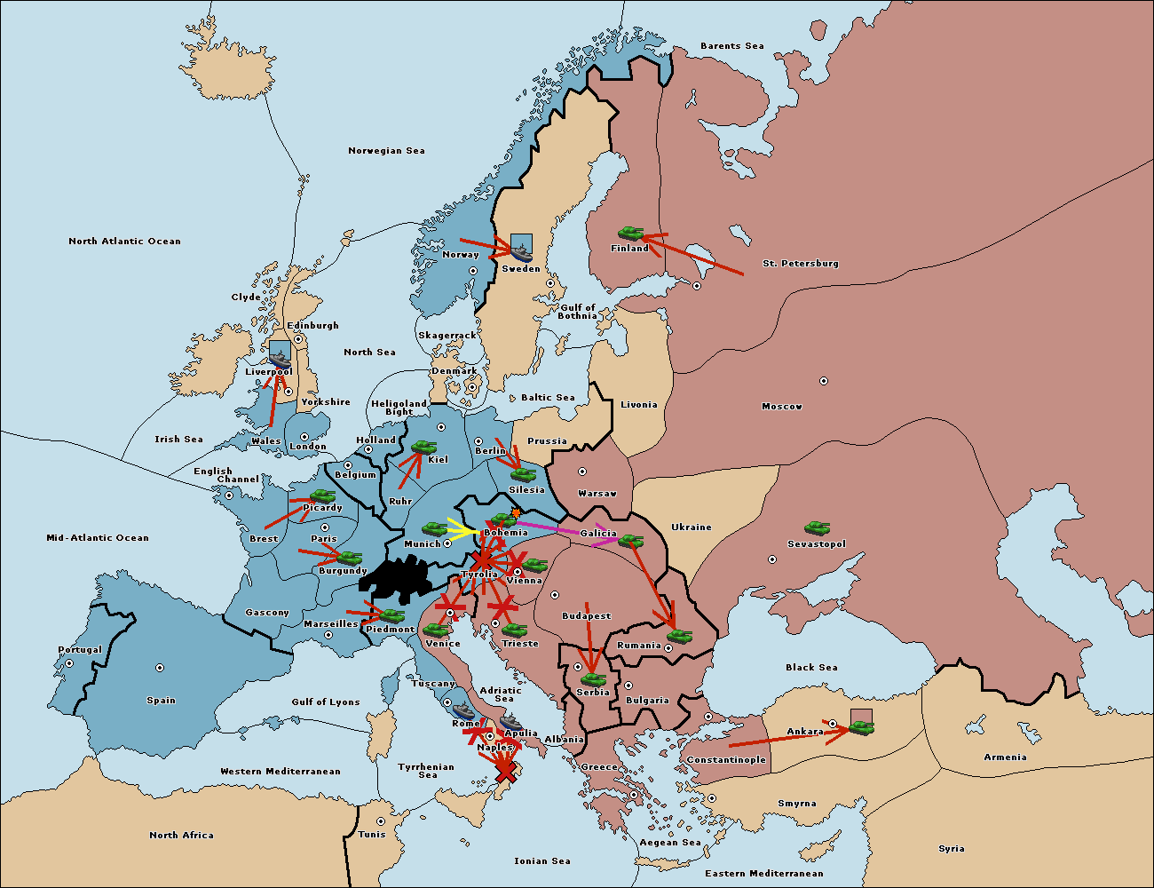 The army at Tyrolia support move to Vienna from Bohemia.
