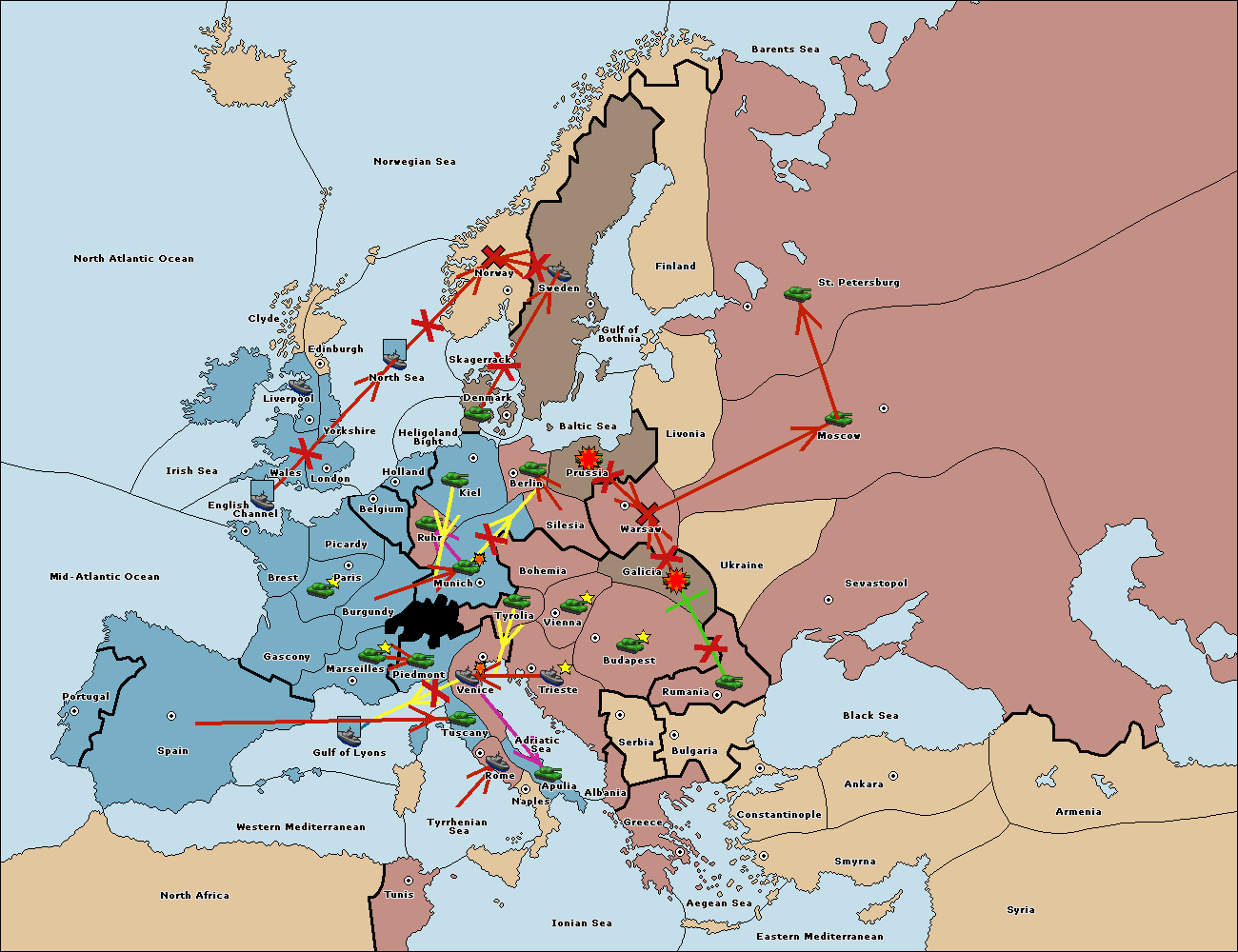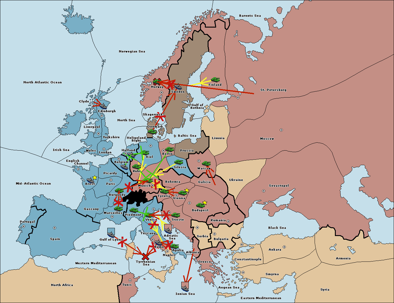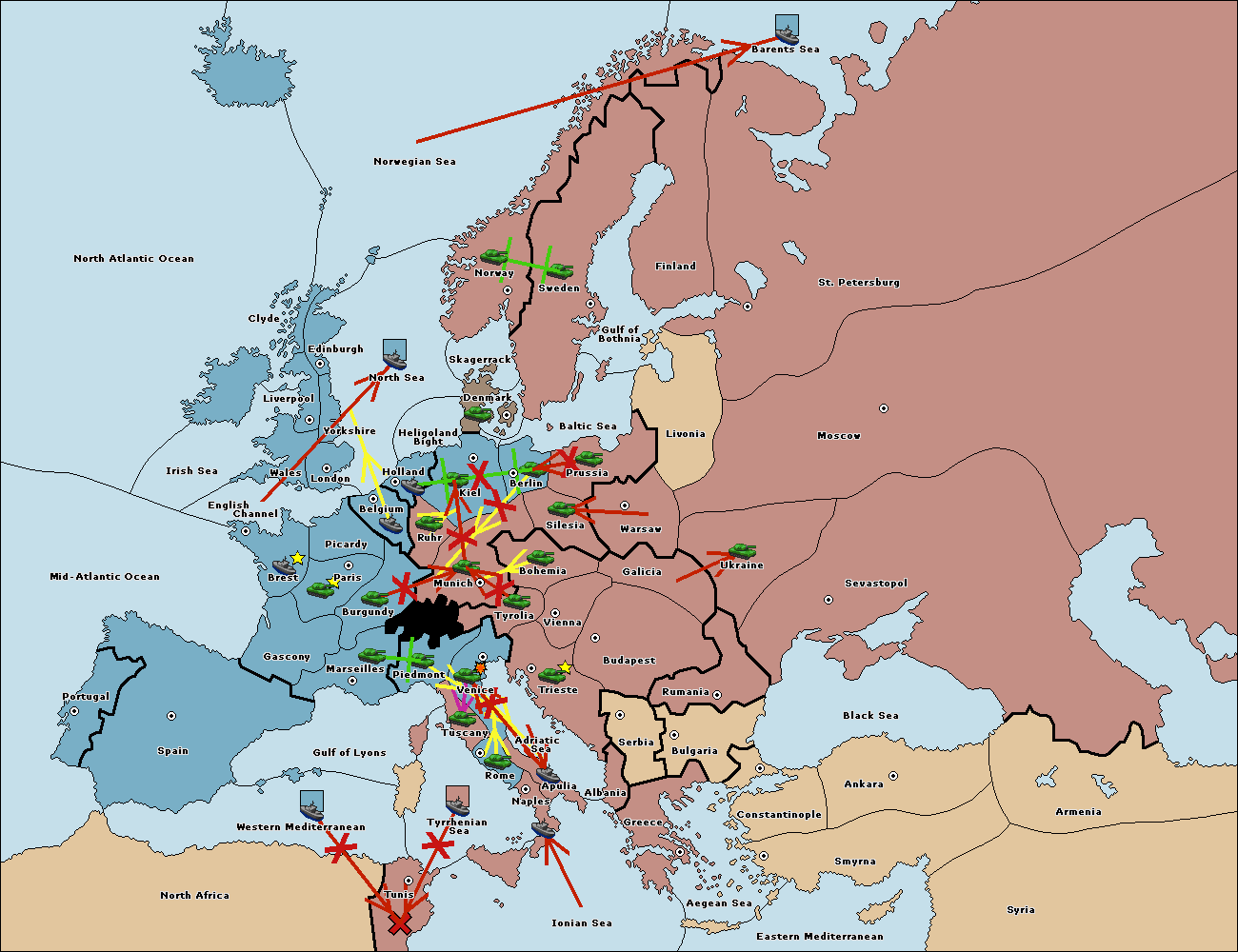The fleet at Western Mediterranean move to Tyrrhenian Sea.