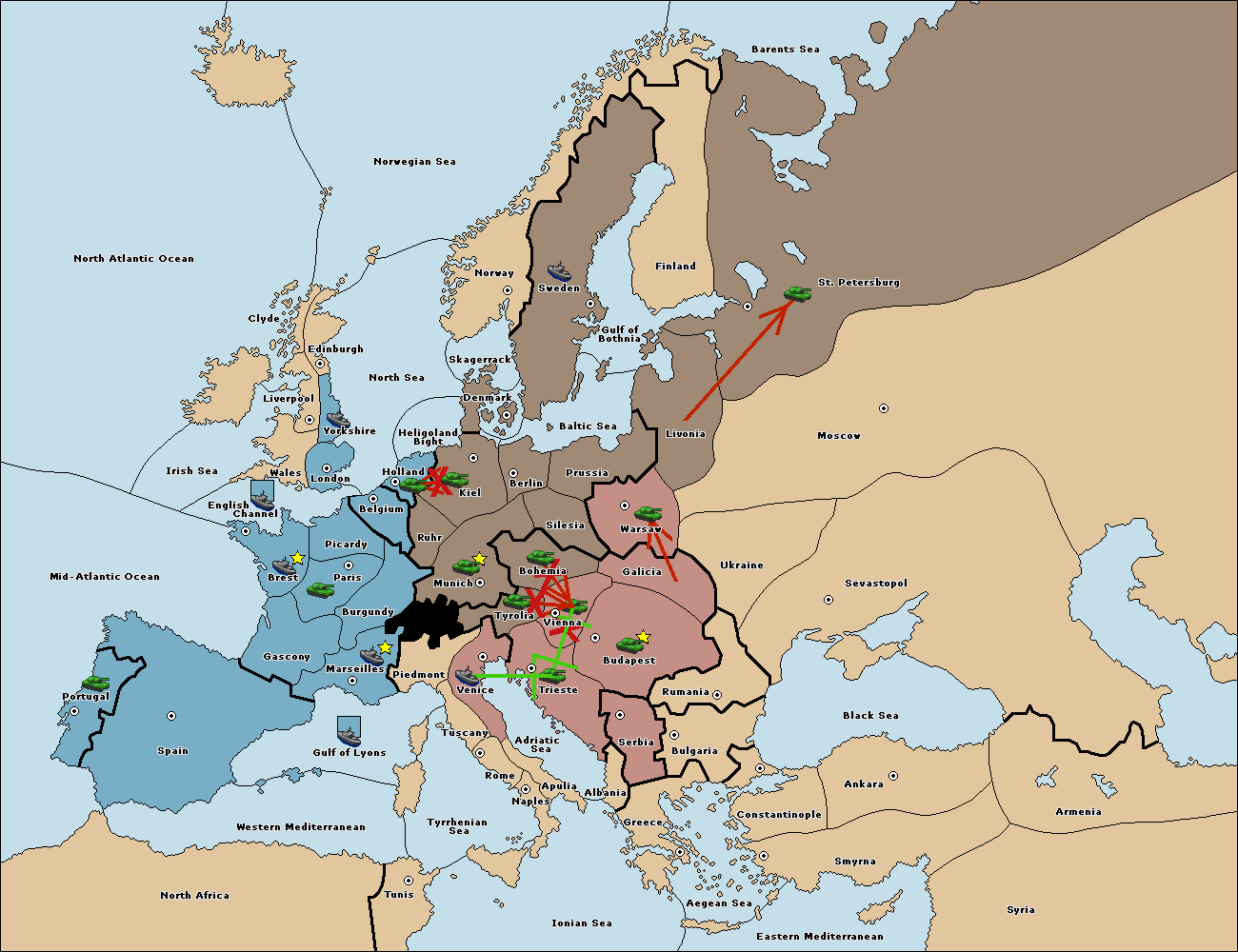 The army at Tyrolia move to Vienna.