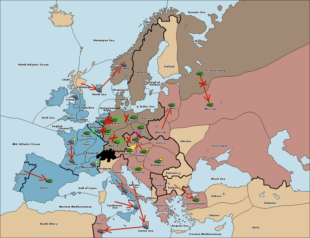 The army at Tyrolia support move to Bohemia from Vienna.