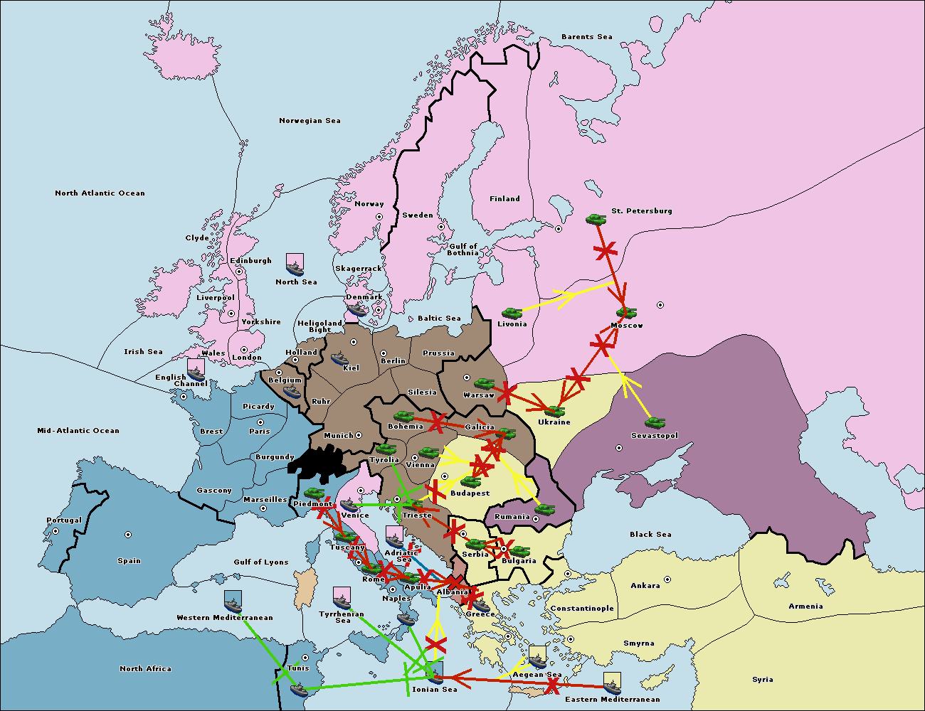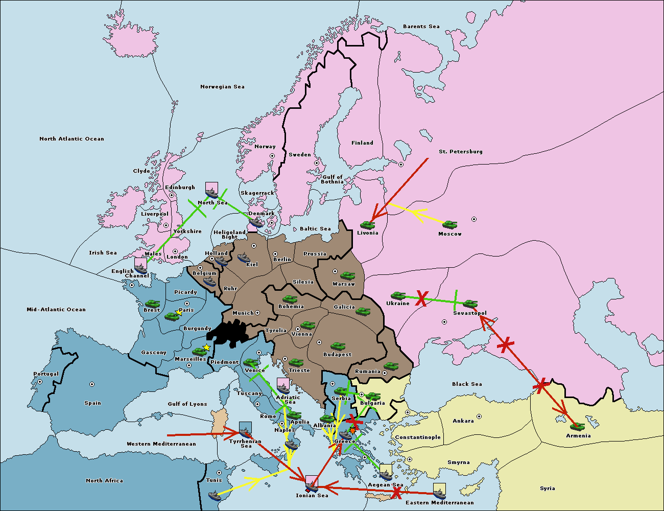The fleet at Ionian Sea support hold to Adriatic Sea.
