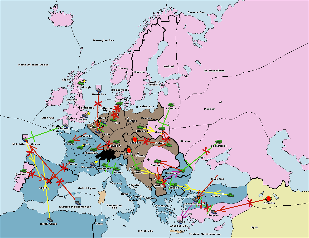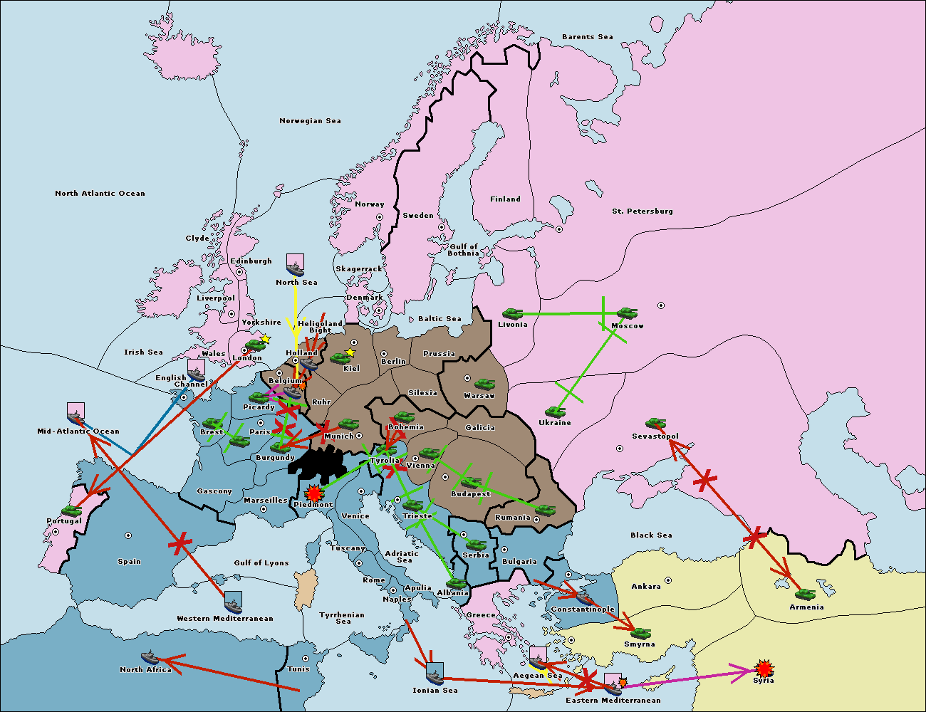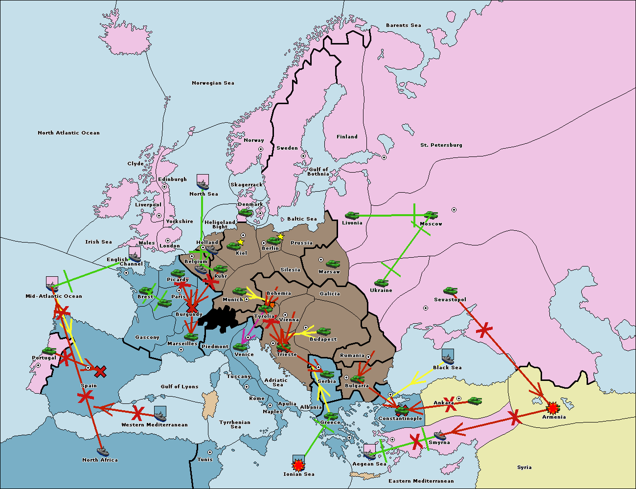 The fleet at Mid-Atlantic Ocean move to Western Mediterranean.