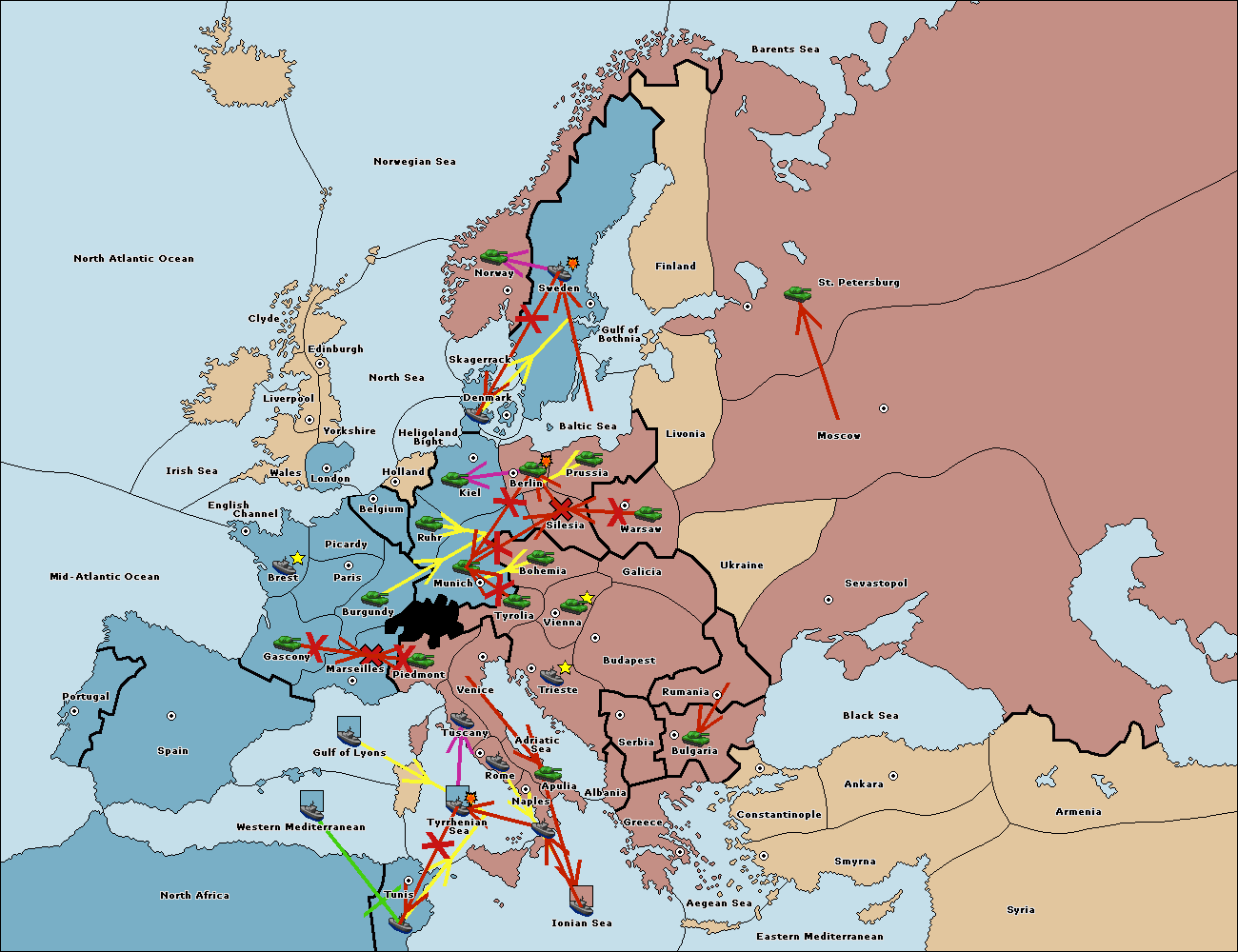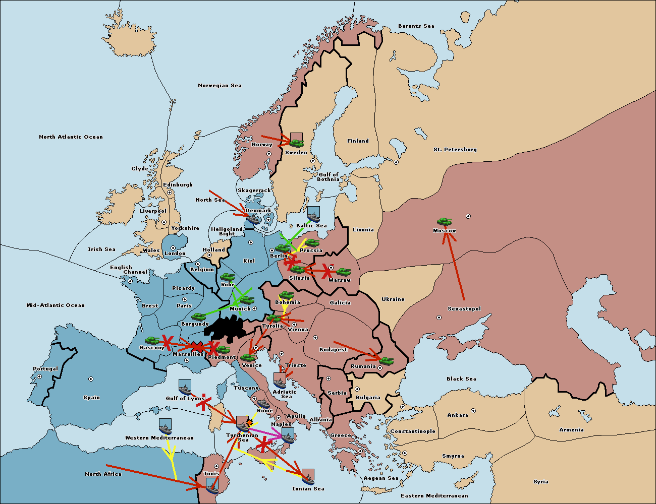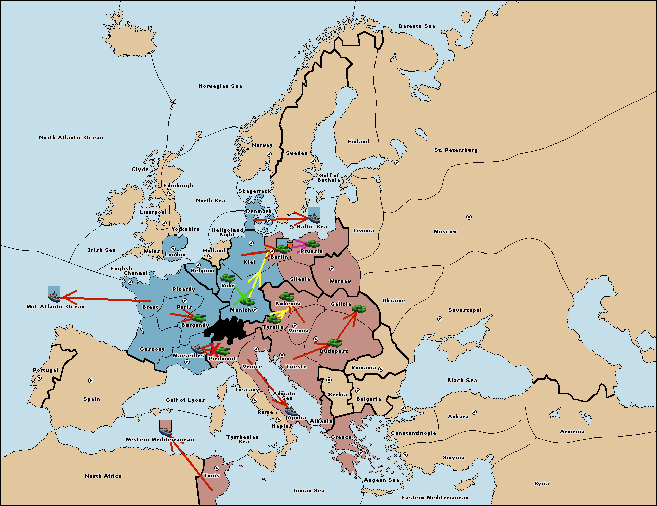 The fleet at Mid-Atlantic Ocean move to Western Mediterranean.