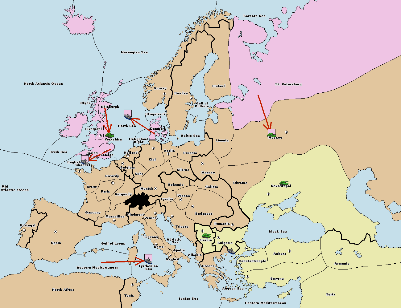 The fleet at Mid-Atlantic Ocean move to Western Mediterranean.