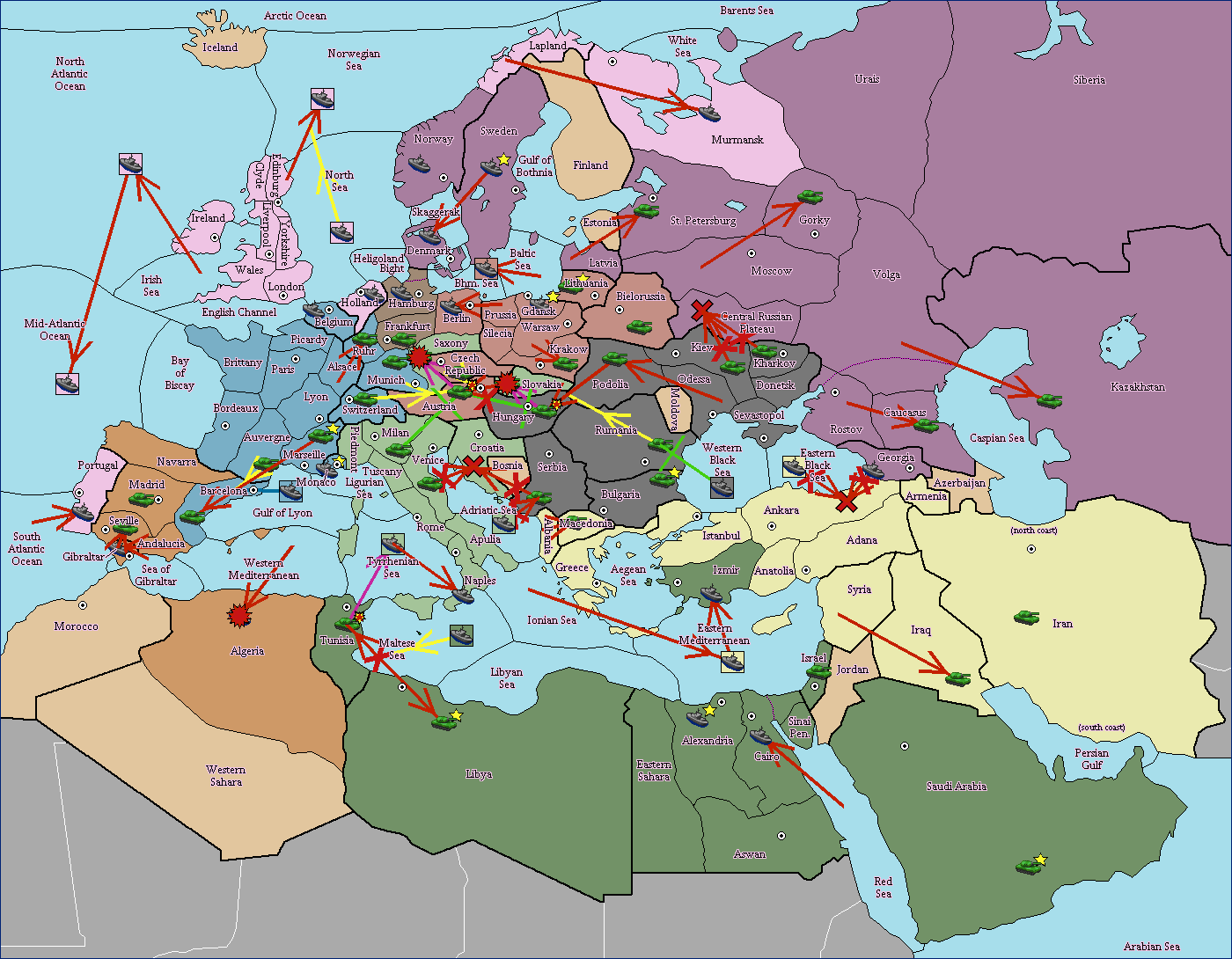 The fleet at Maltese Sea move to Tyrrhenian Sea.