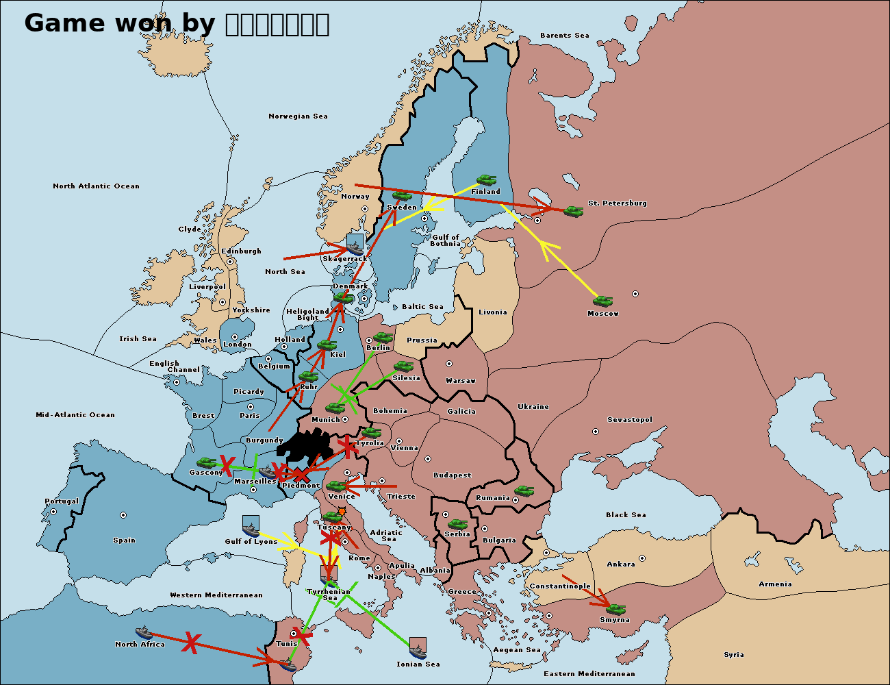 The fleet at Tunis support move to Tyrrhenian Sea from Ionian Sea.