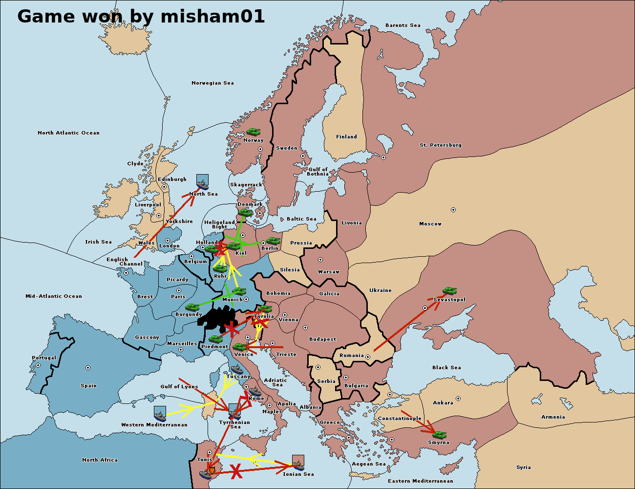 Неудачные приказы обычно отображаются только на большой карте ().
