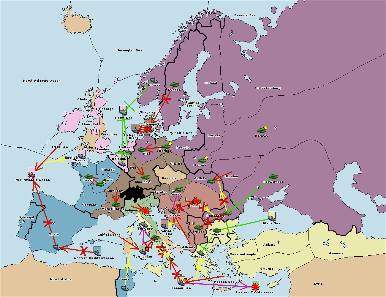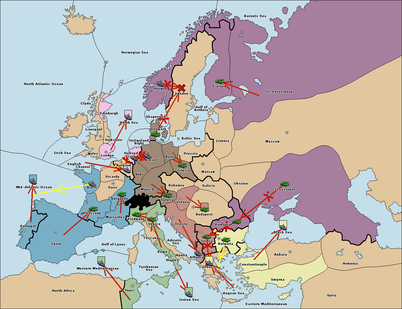 The fleet at Tyrrhenian Sea move to Gulf of Lyons.