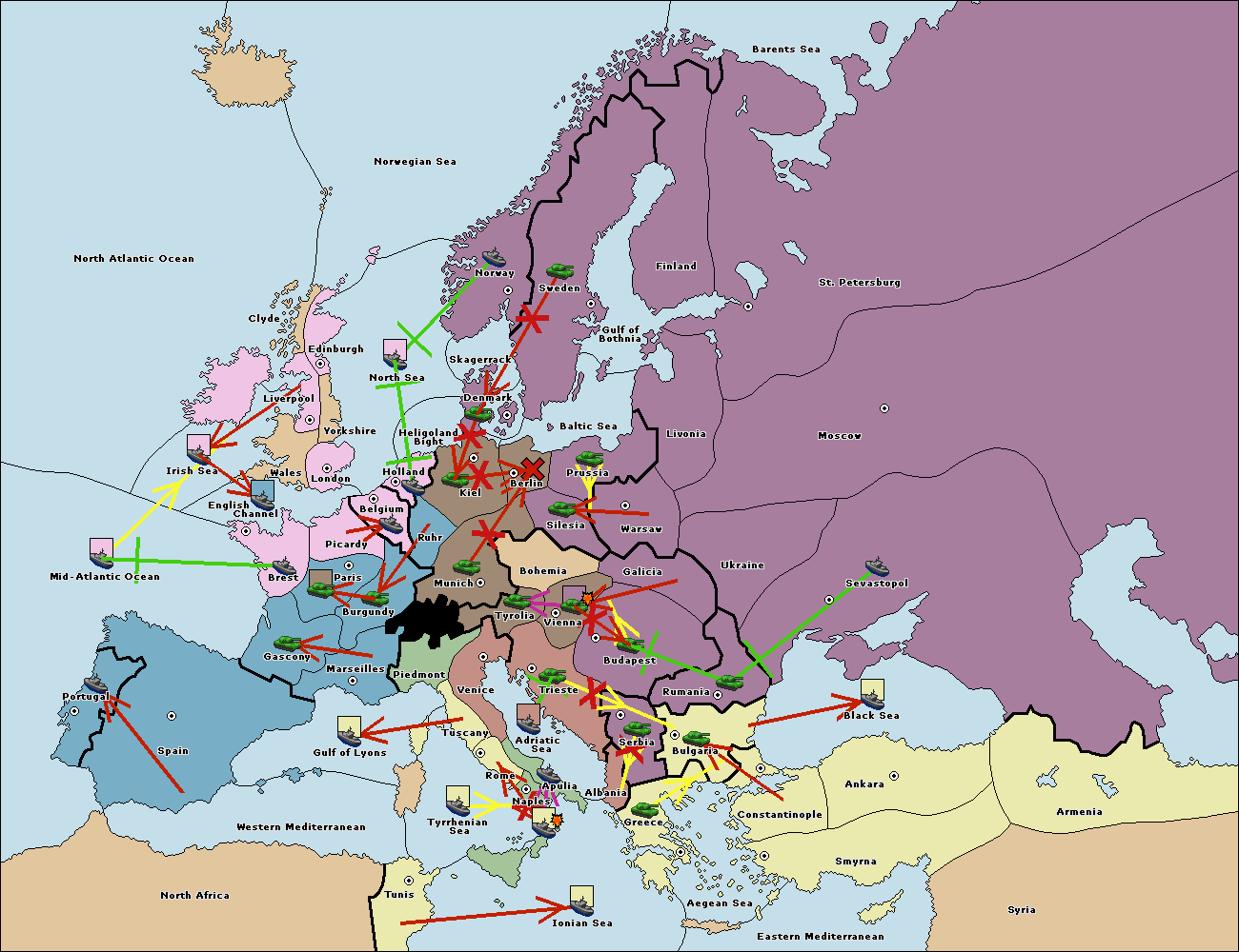 The fleet at Tyrrhenian Sea support move to Ionian Sea from Naples.