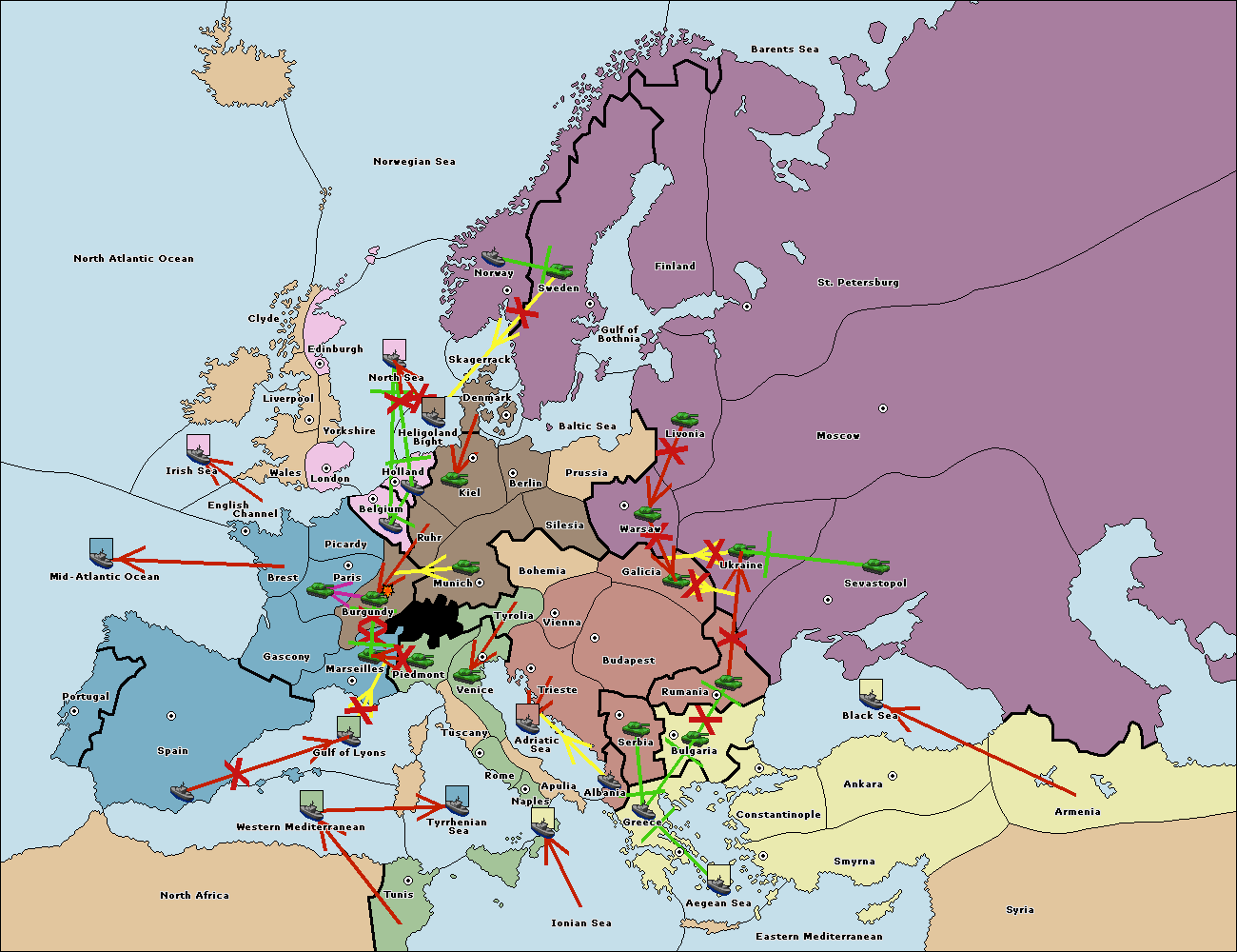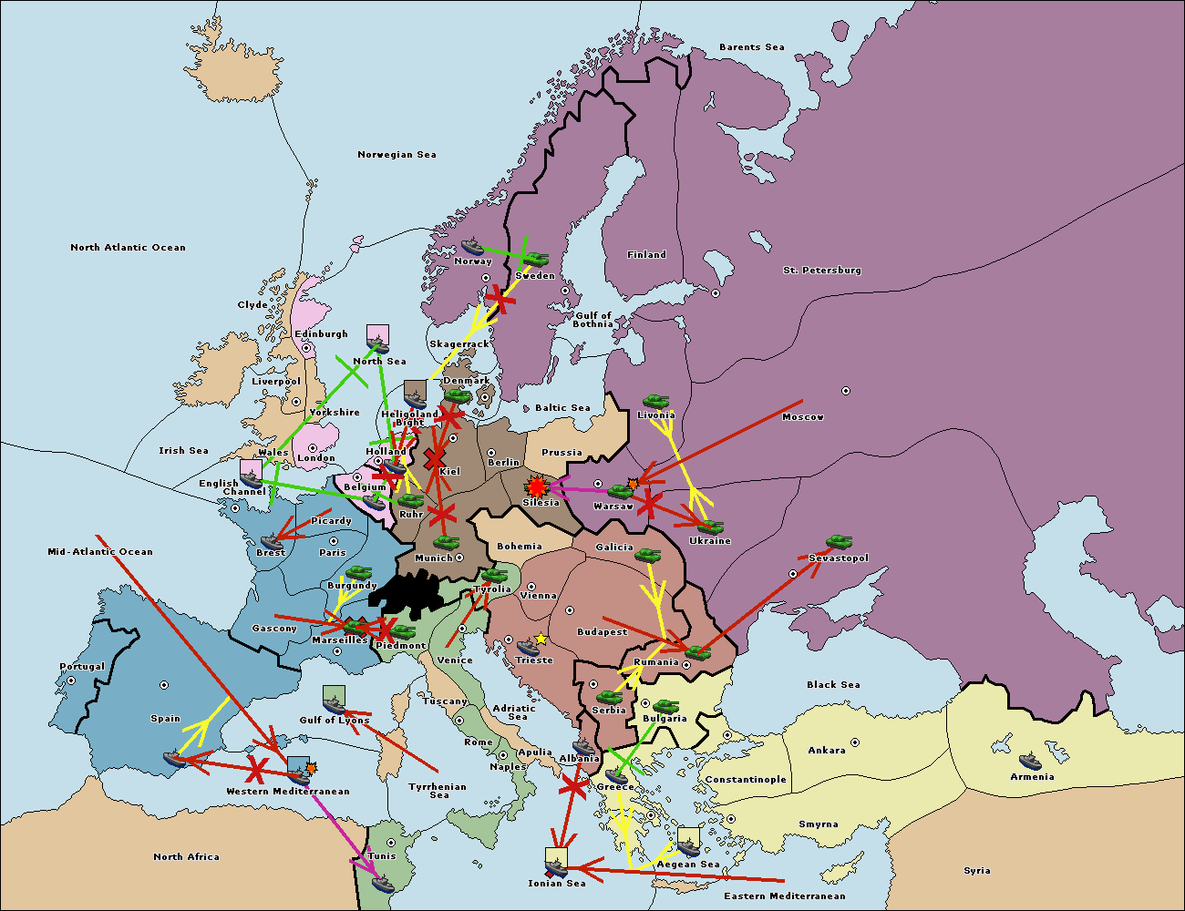 The fleet at Gulf of Lyons support move to Marseilles from Piedmont.