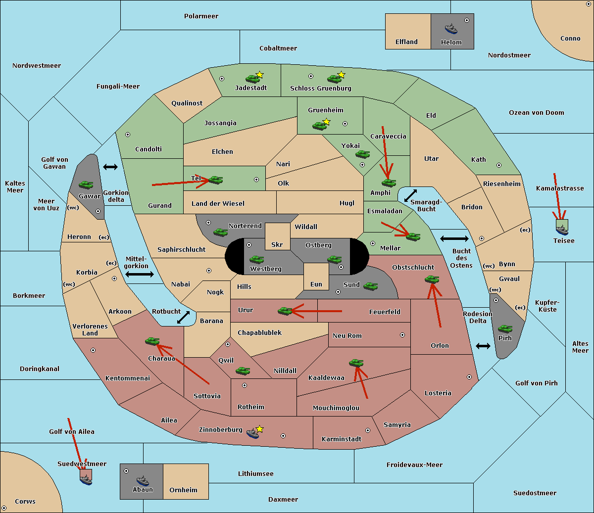 The fleet at Schloss Gruenburg move to Ozean von Doom.