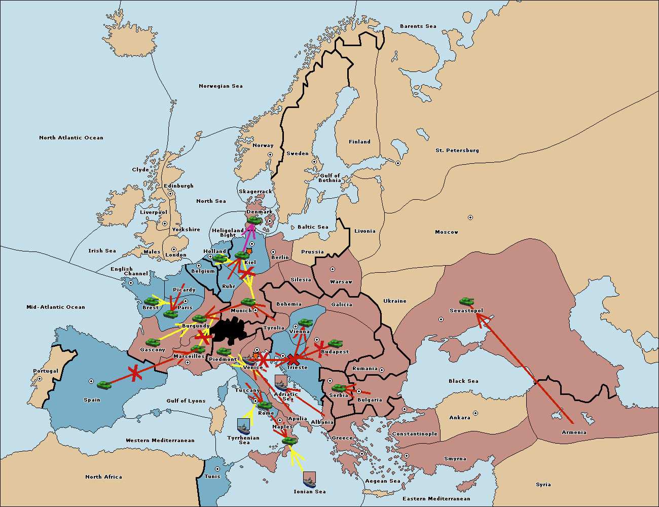 The fleet at Tyrrhenian Sea support move to Ionian Sea from Tunis.