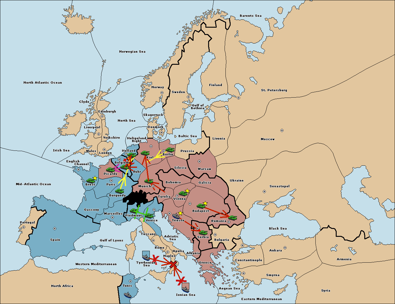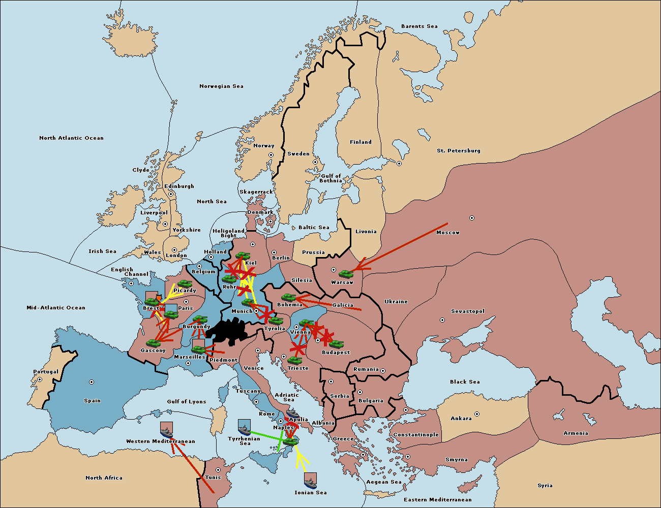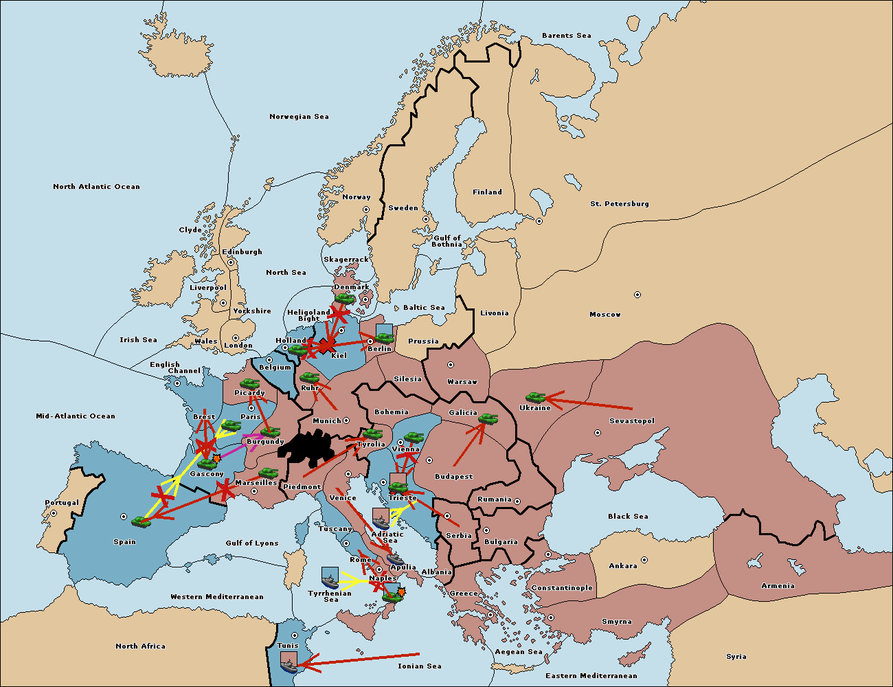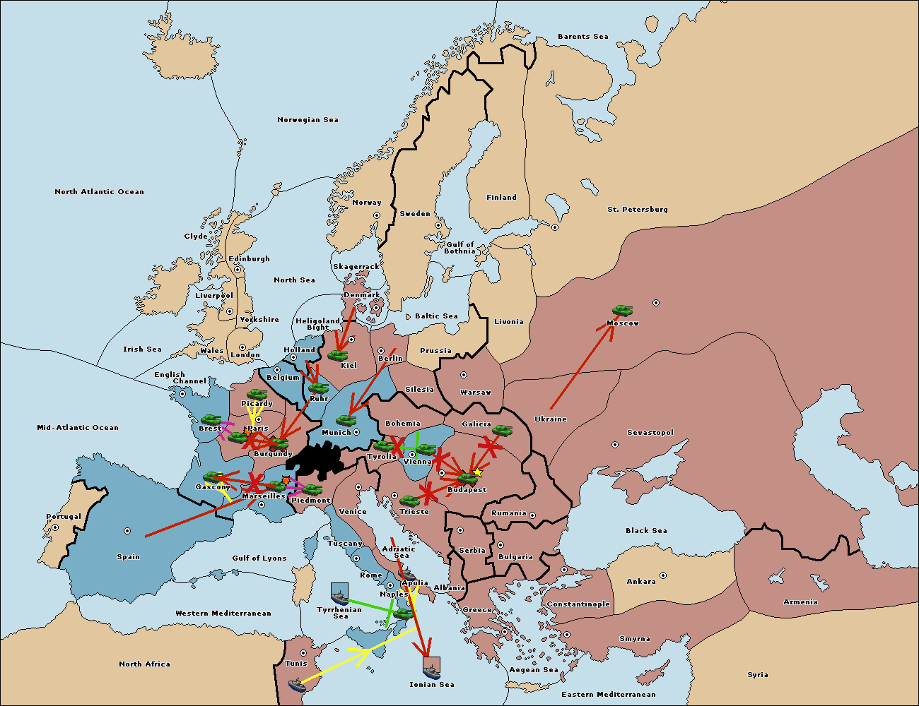 The fleet at Tyrrhenian Sea support move to Naples from Ionian Sea.