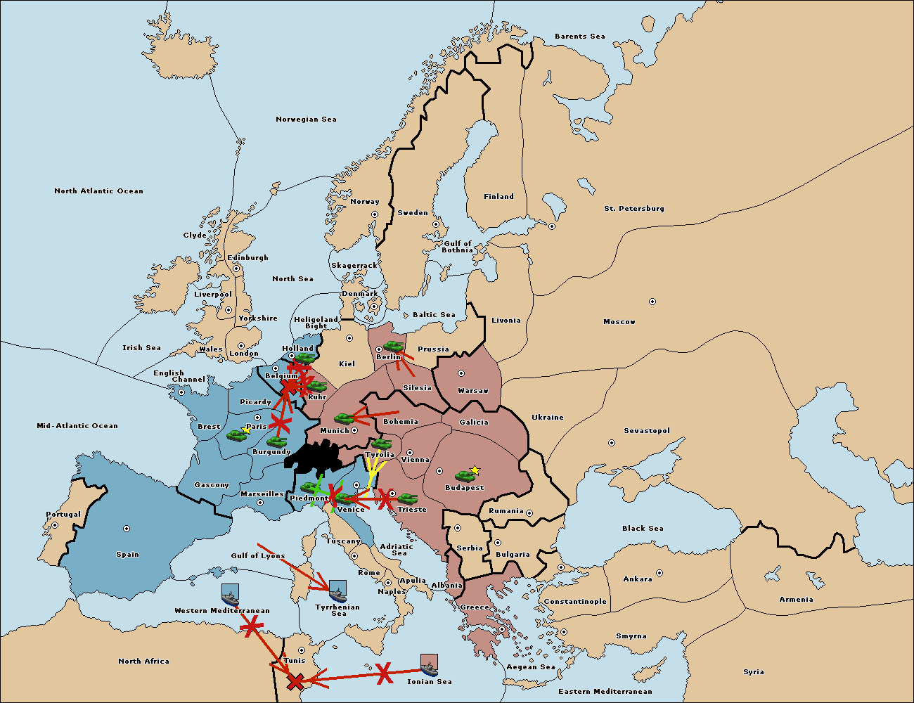 The fleet at Gulf of Lyons move to Tyrrhenian Sea.
