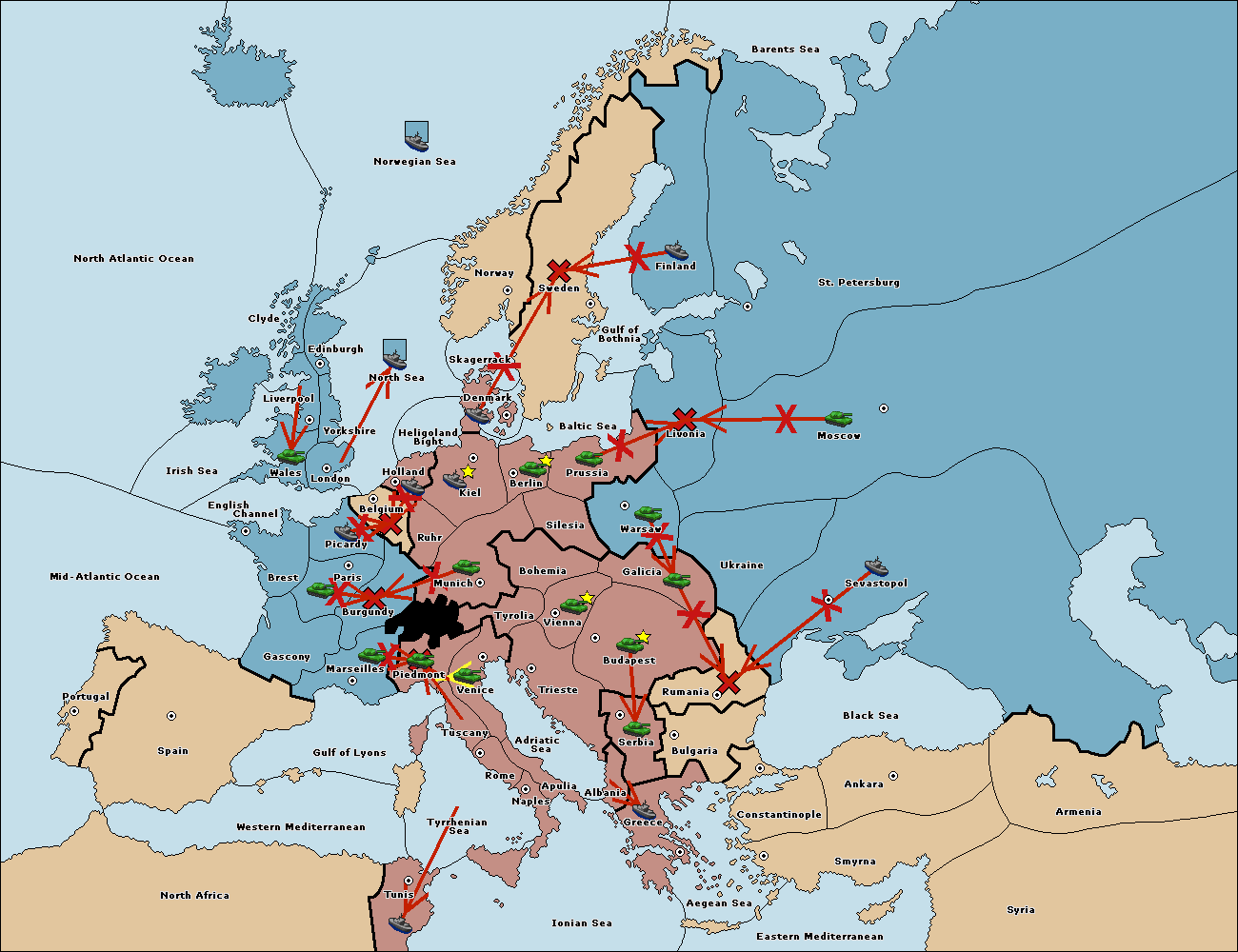The fleet at St. Petersburg (South Coast) move to Finland.