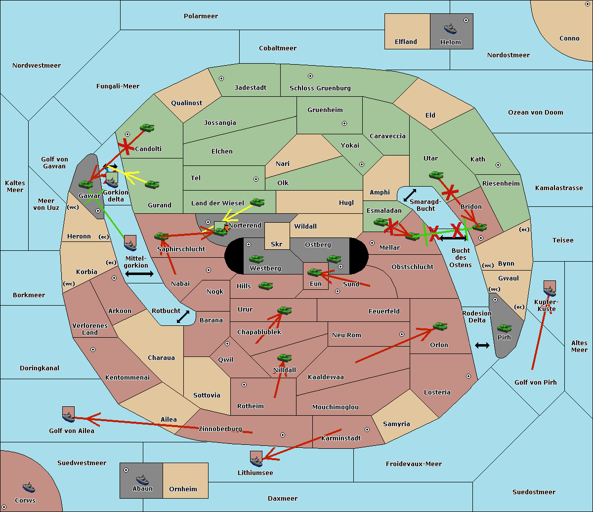 The fleet at Schloss Gruenburg move to Ozean von Doom.
