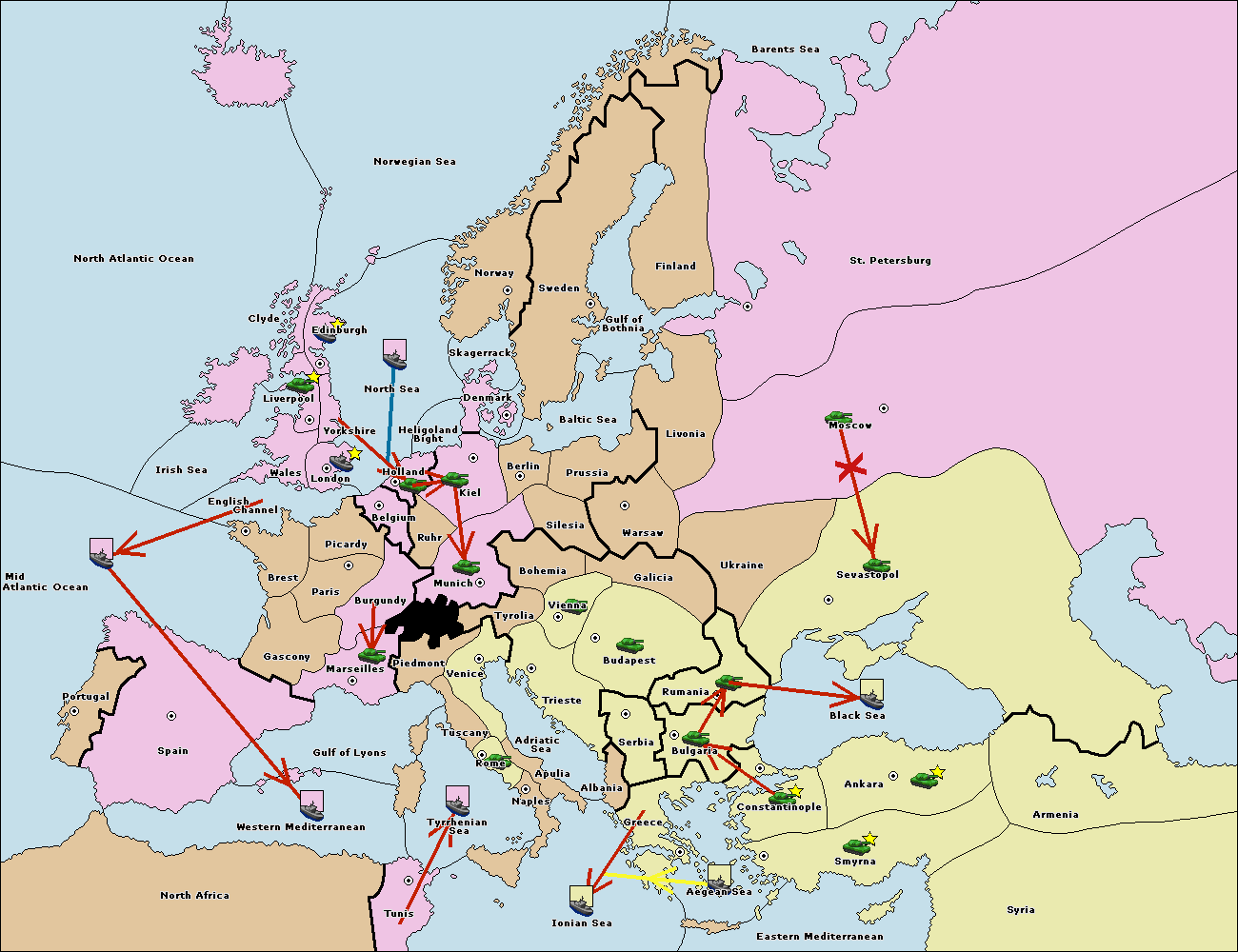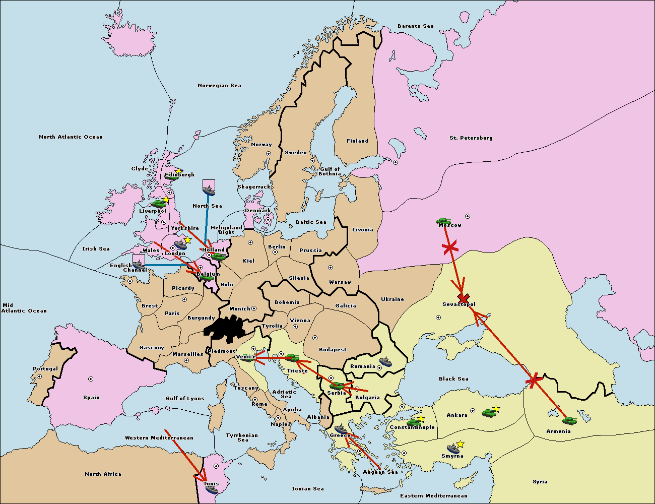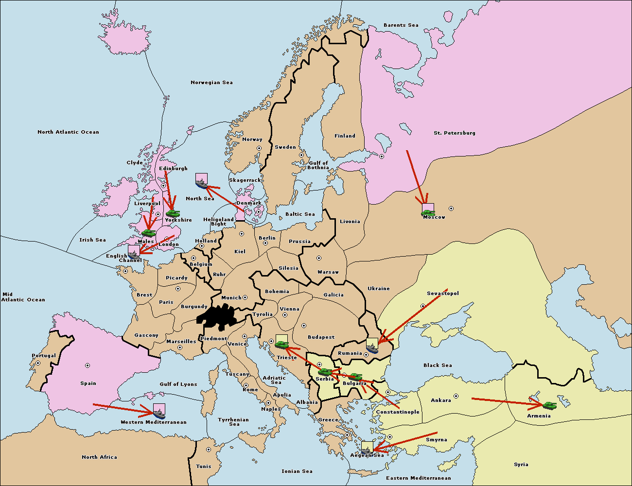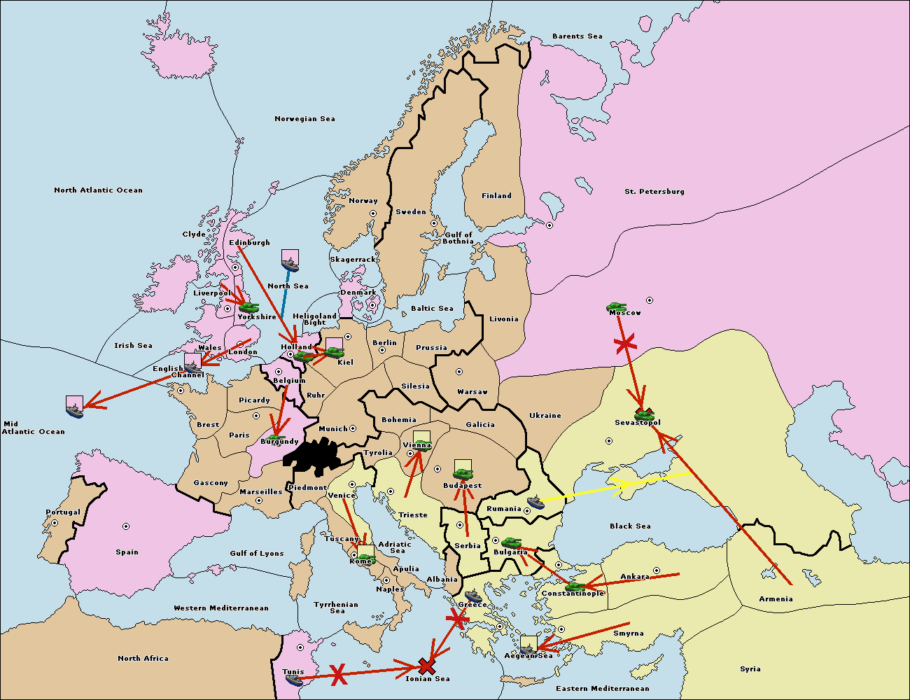 The fleet at Rumania support move to Sevastopol from Armenia.