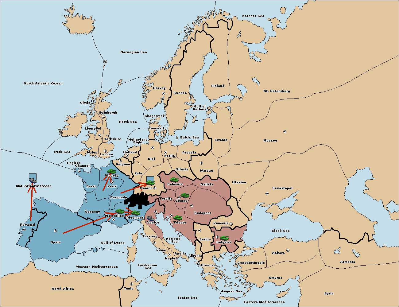 The fleet at Mid-Atlantic Ocean move to Portugal.