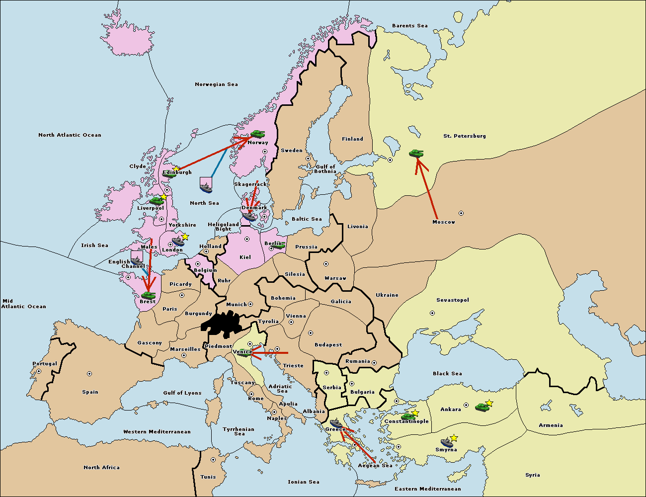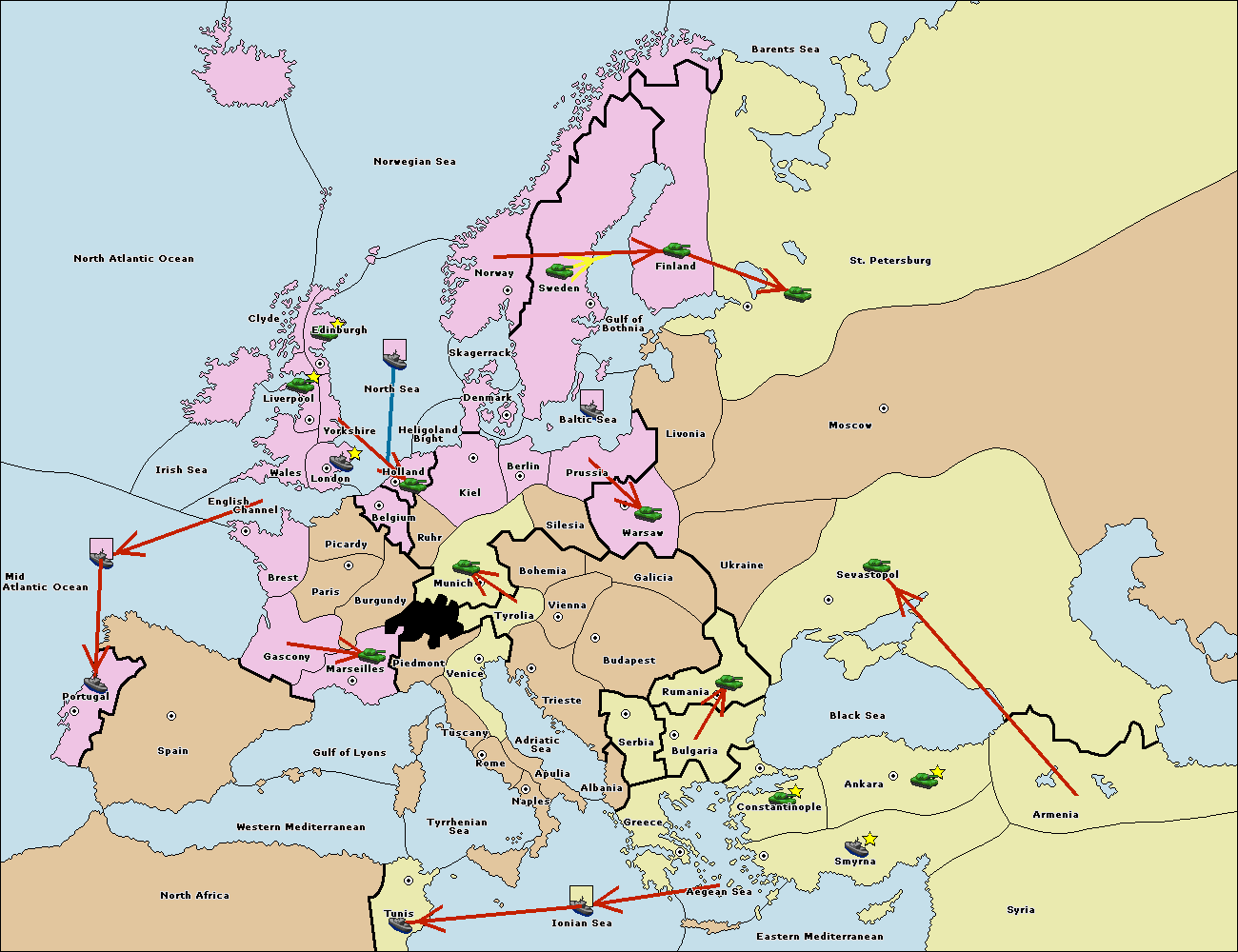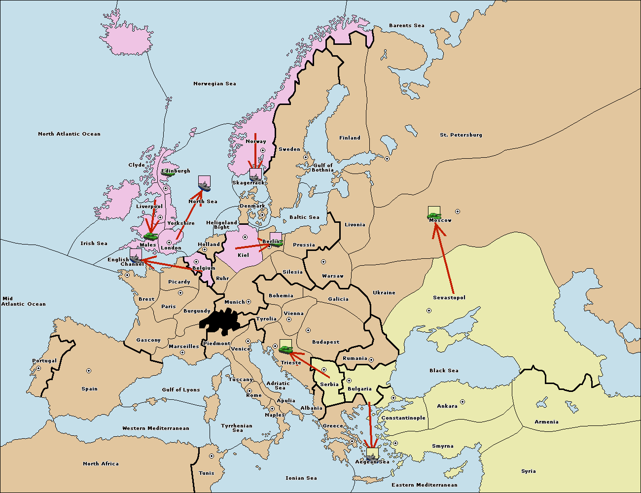 The fleet at Bulgaria (South Coast) move to Aegean Sea.