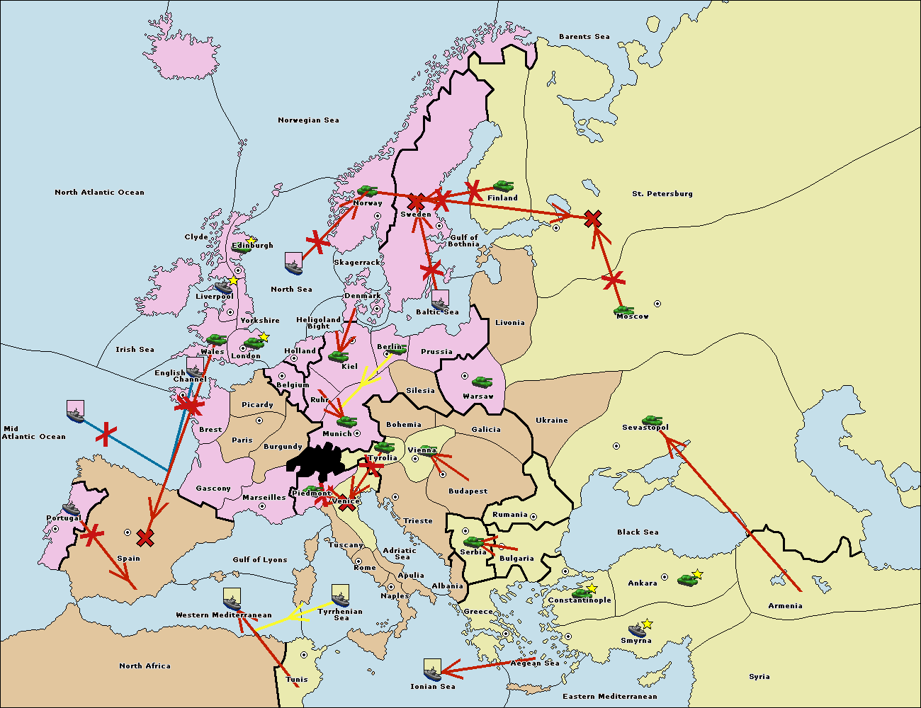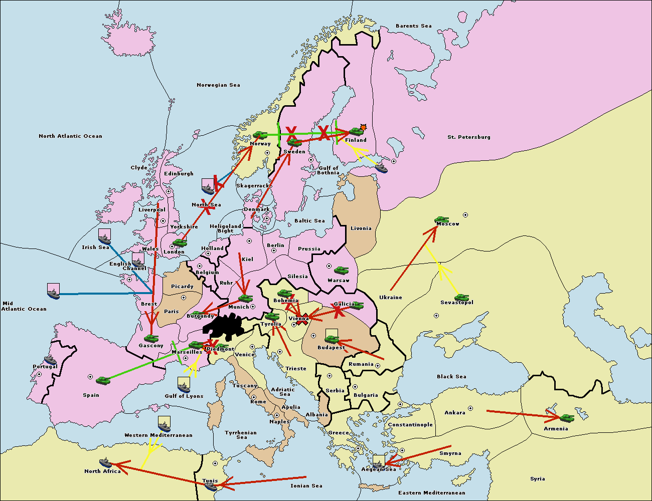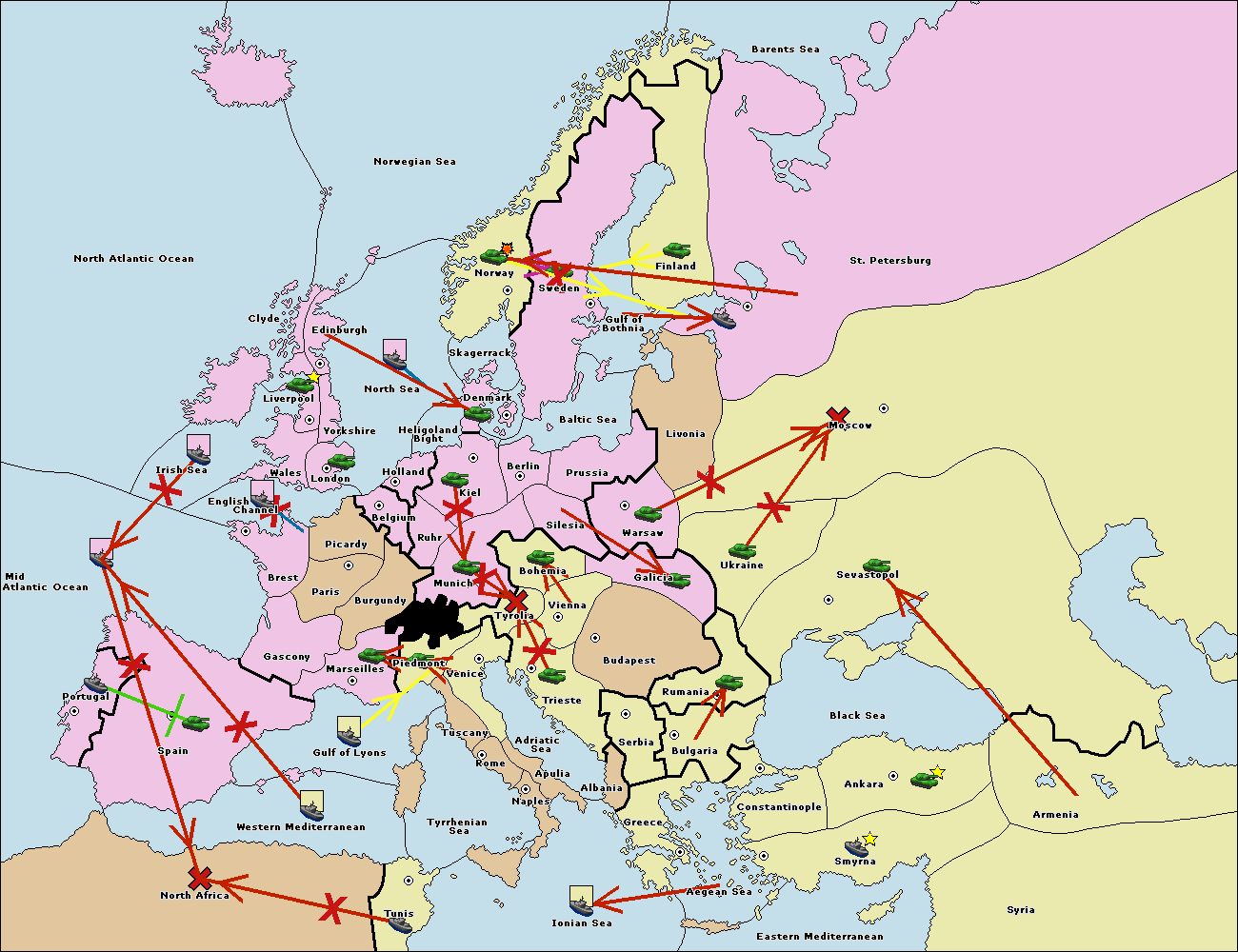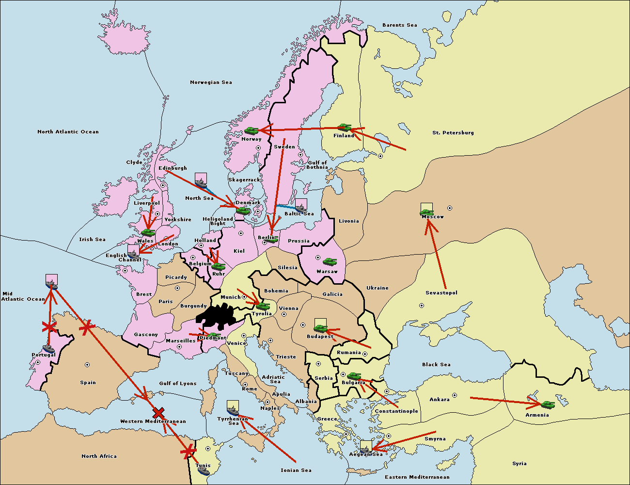 The fleet at Bulgaria (South Coast) move to Aegean Sea.