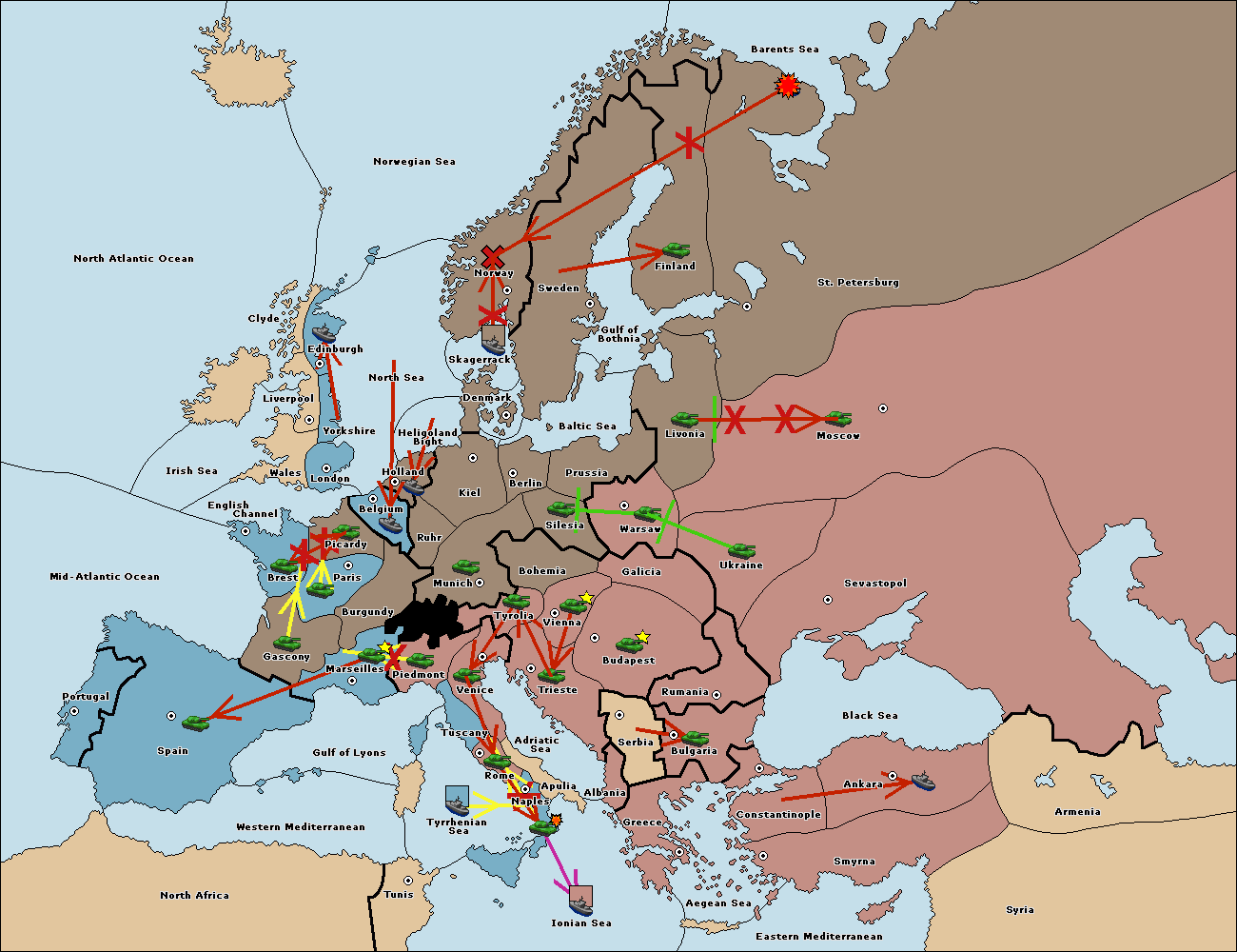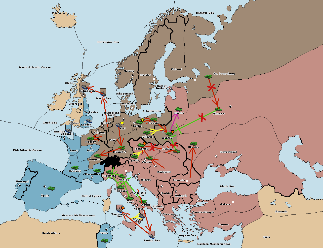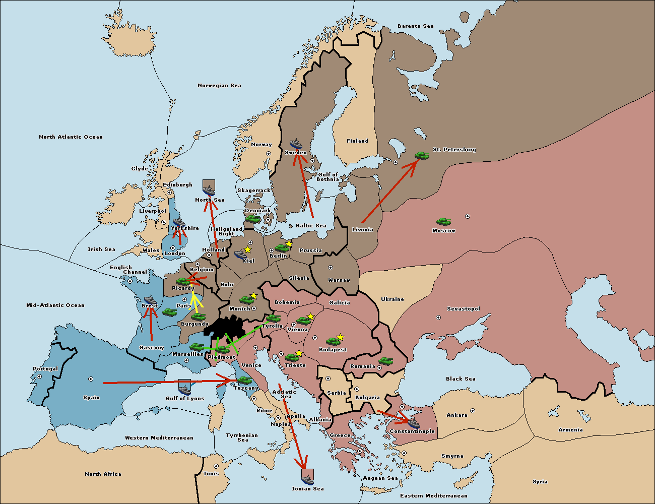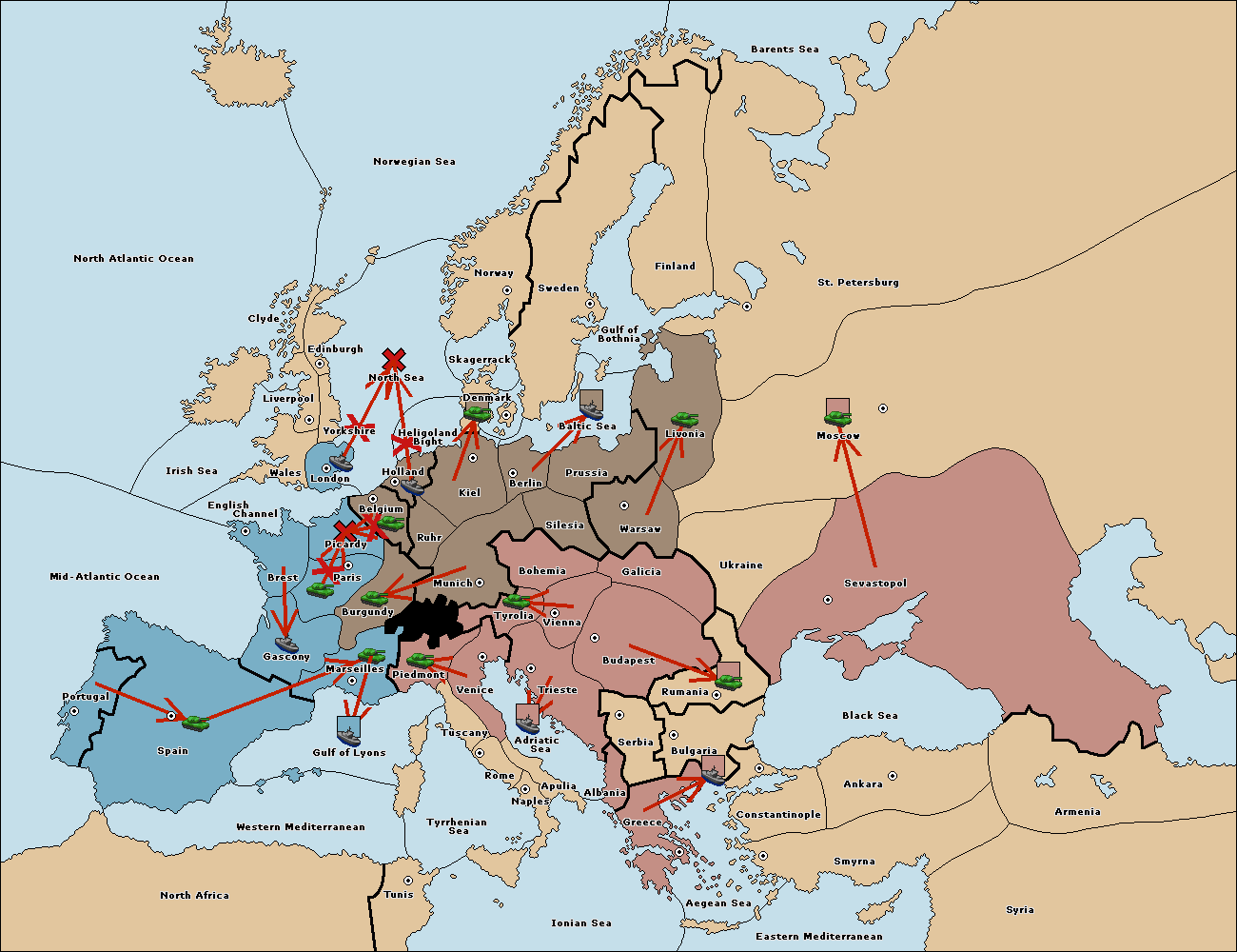 The fleet at Bulgaria (South Coast) move to Constantinople.